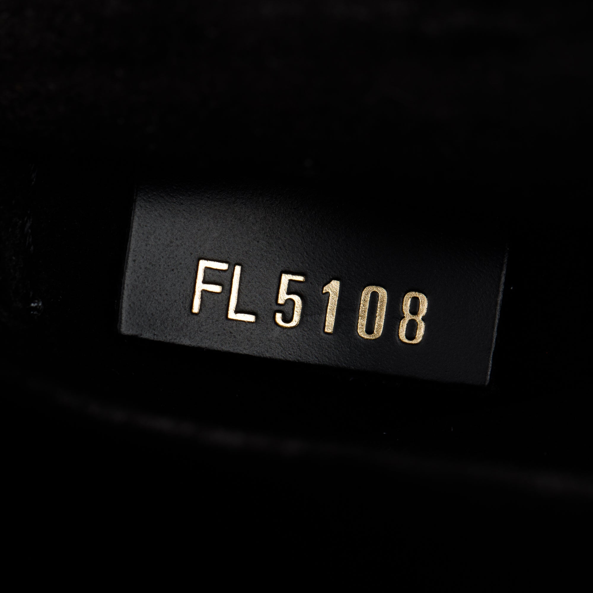 Condition: Very Good; slight scratches at hardware; light scratches at exterior leather and strap; clean interior