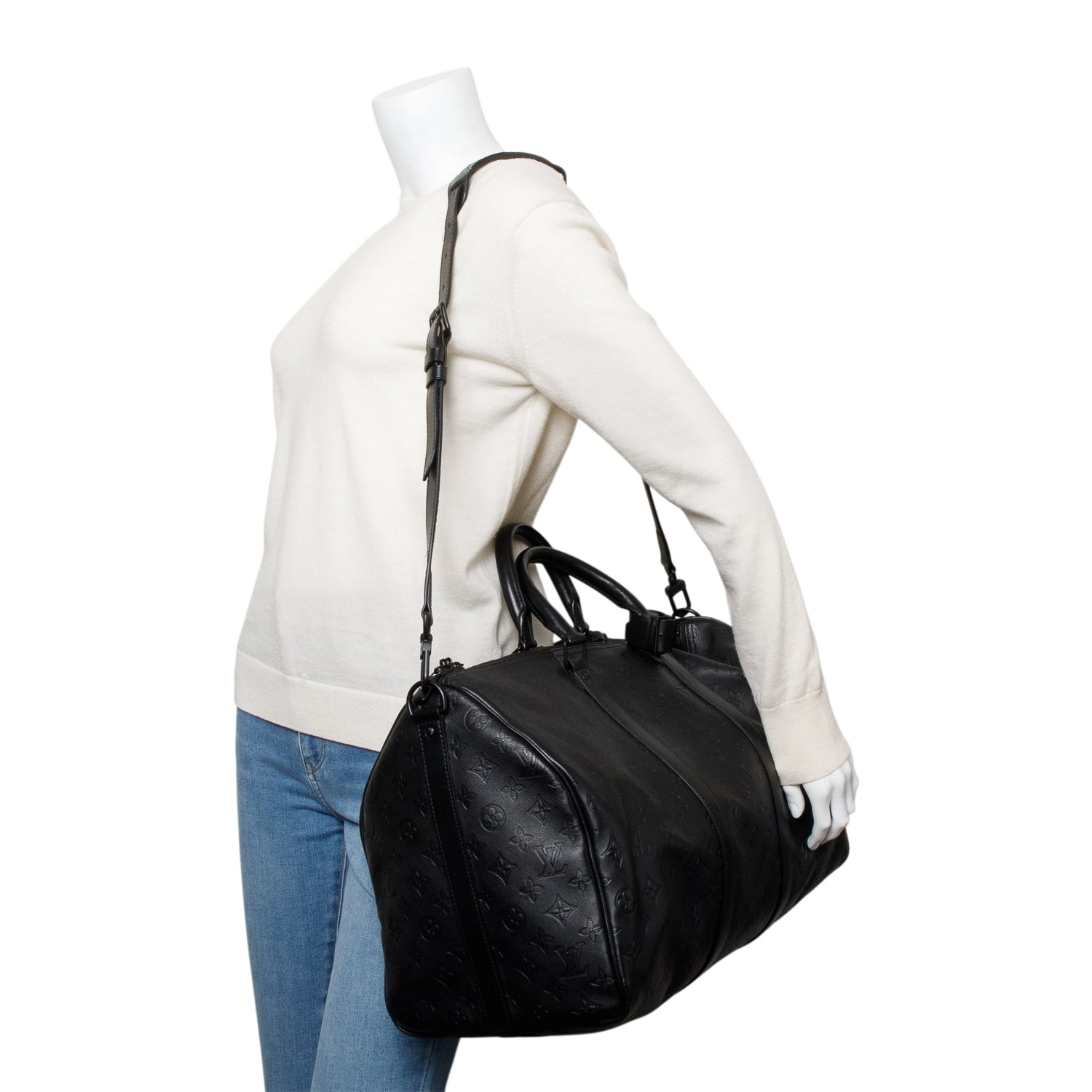 Black Monogram Shadow Embossed Keepall Bandouliere 50 w/ Strap
