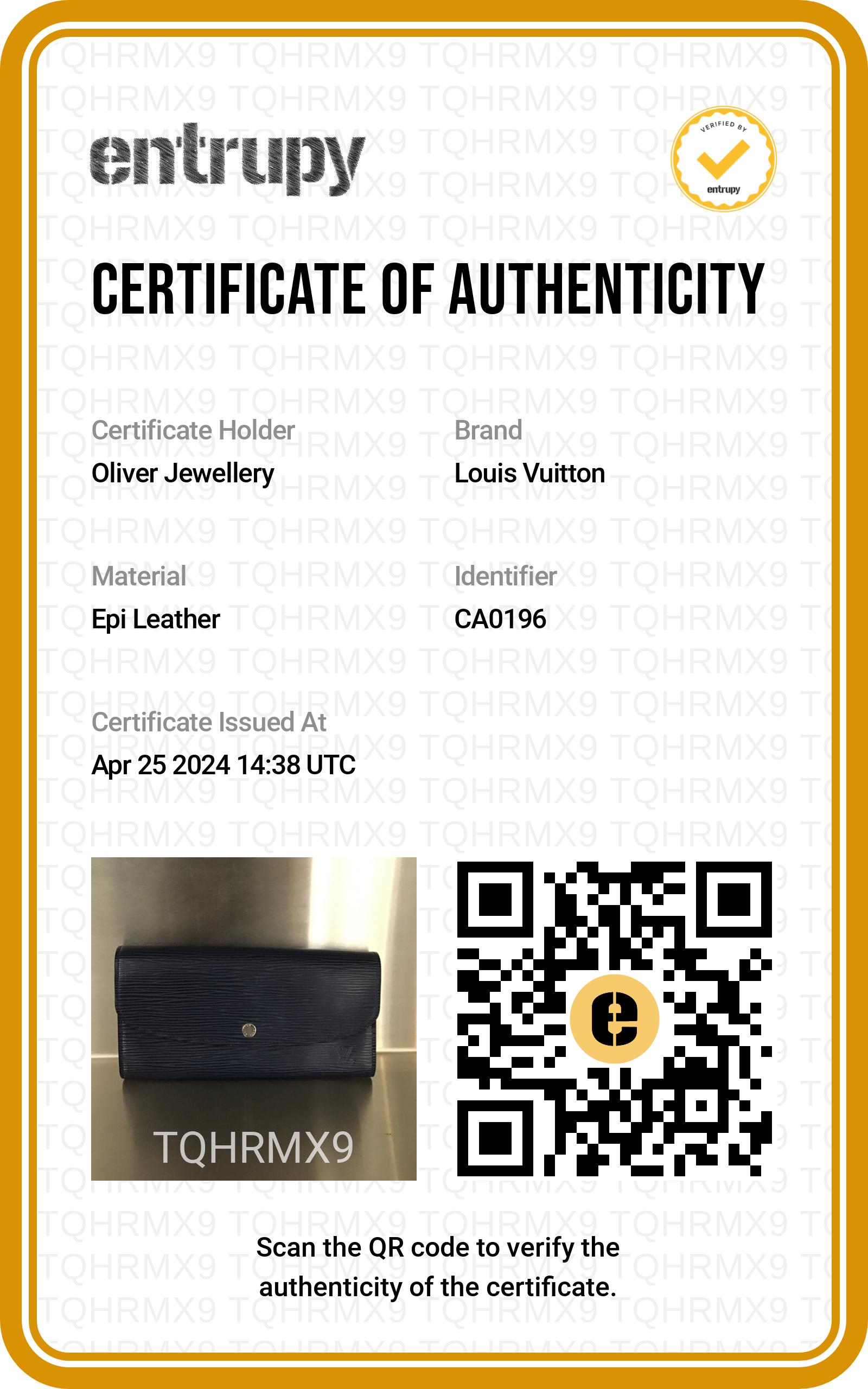 Entrupy Certificate of Authenticity