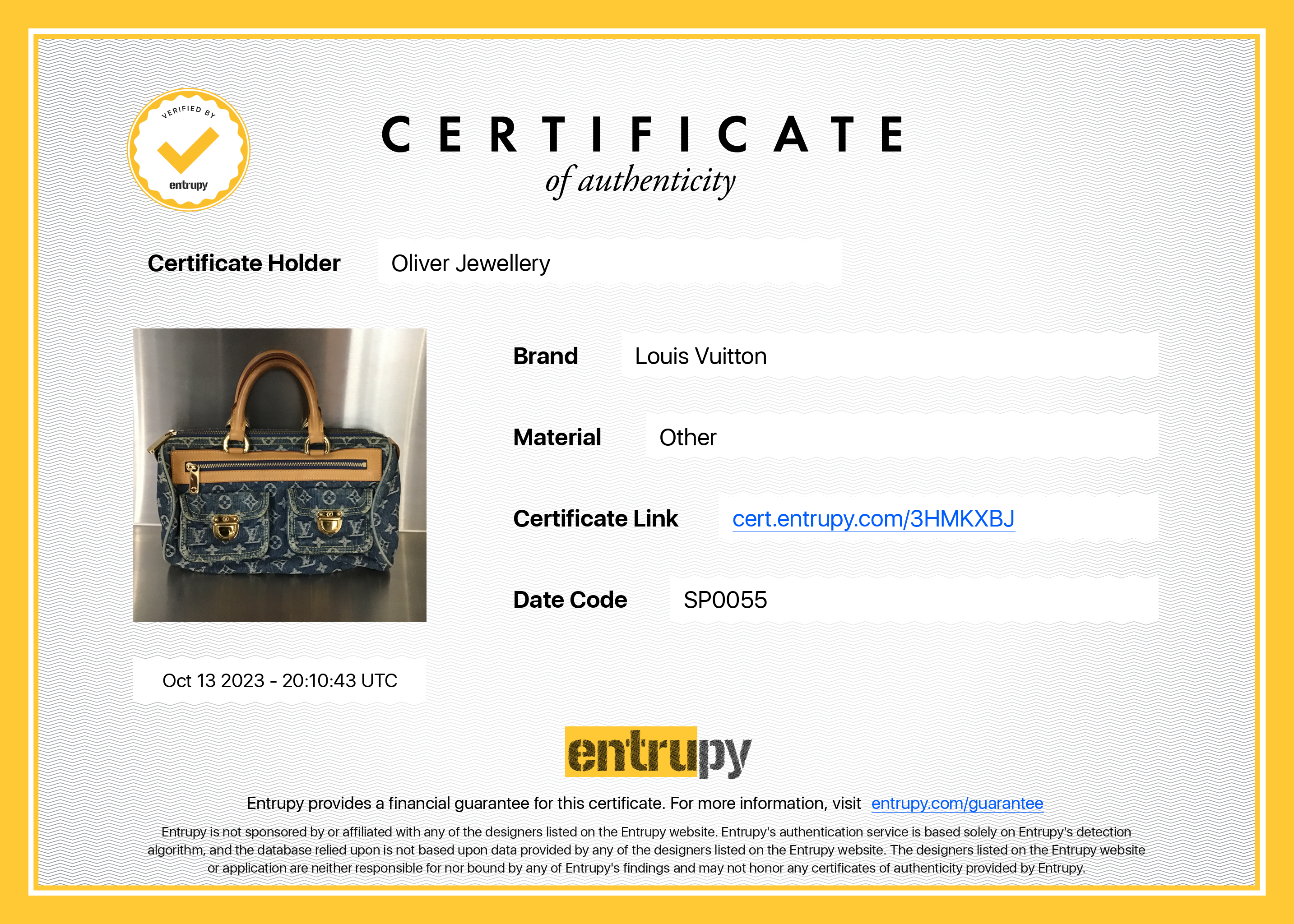 Dust Bag, Entrupy Certificate of Authenticity