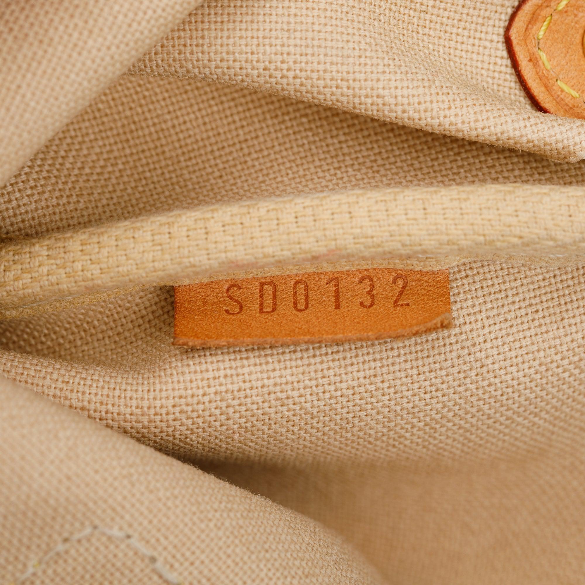 Condition: Very Good; slight scratches and light tarnishing at hardware; slight marks, scuffing at exterior canvas, vachetta trim and strap; clean interior