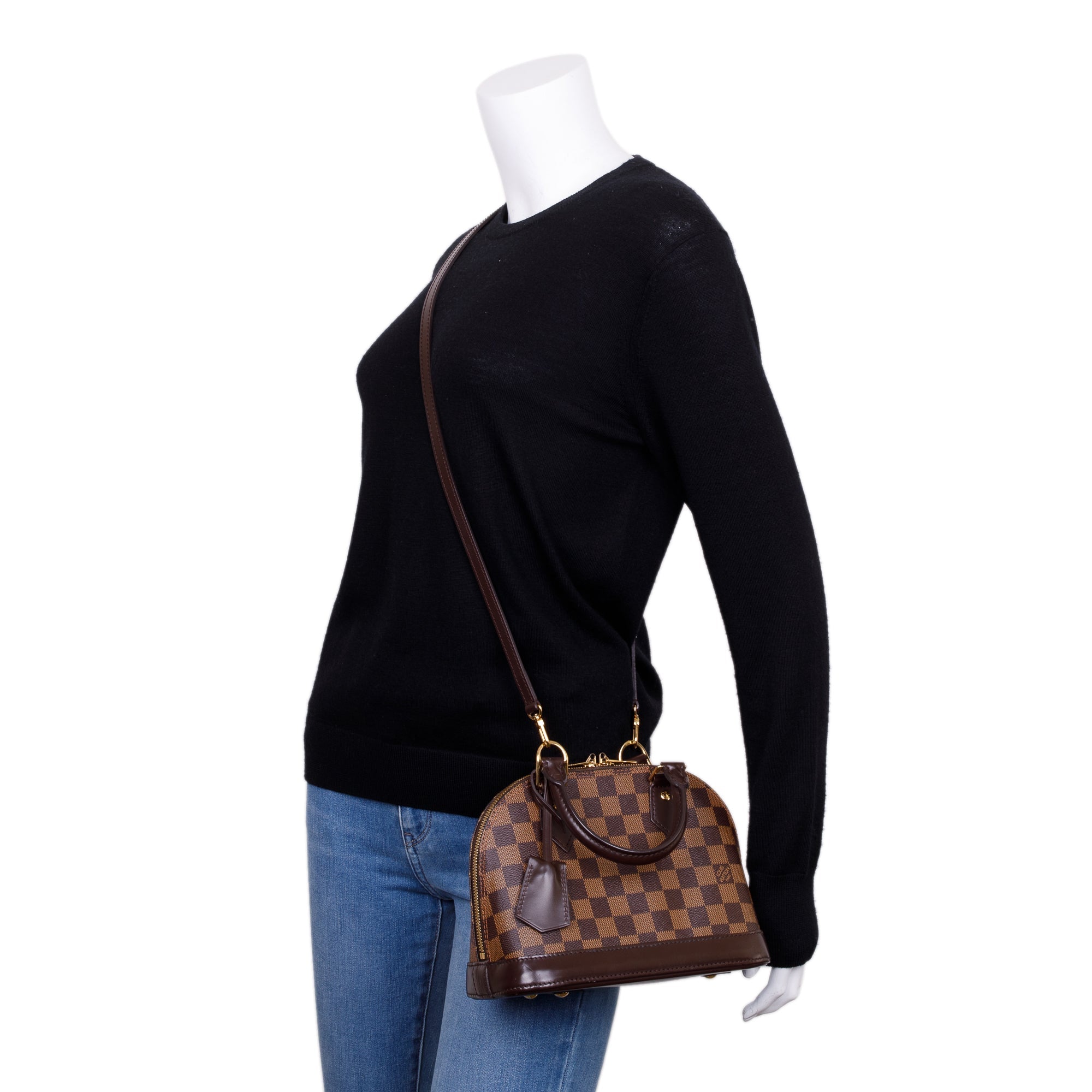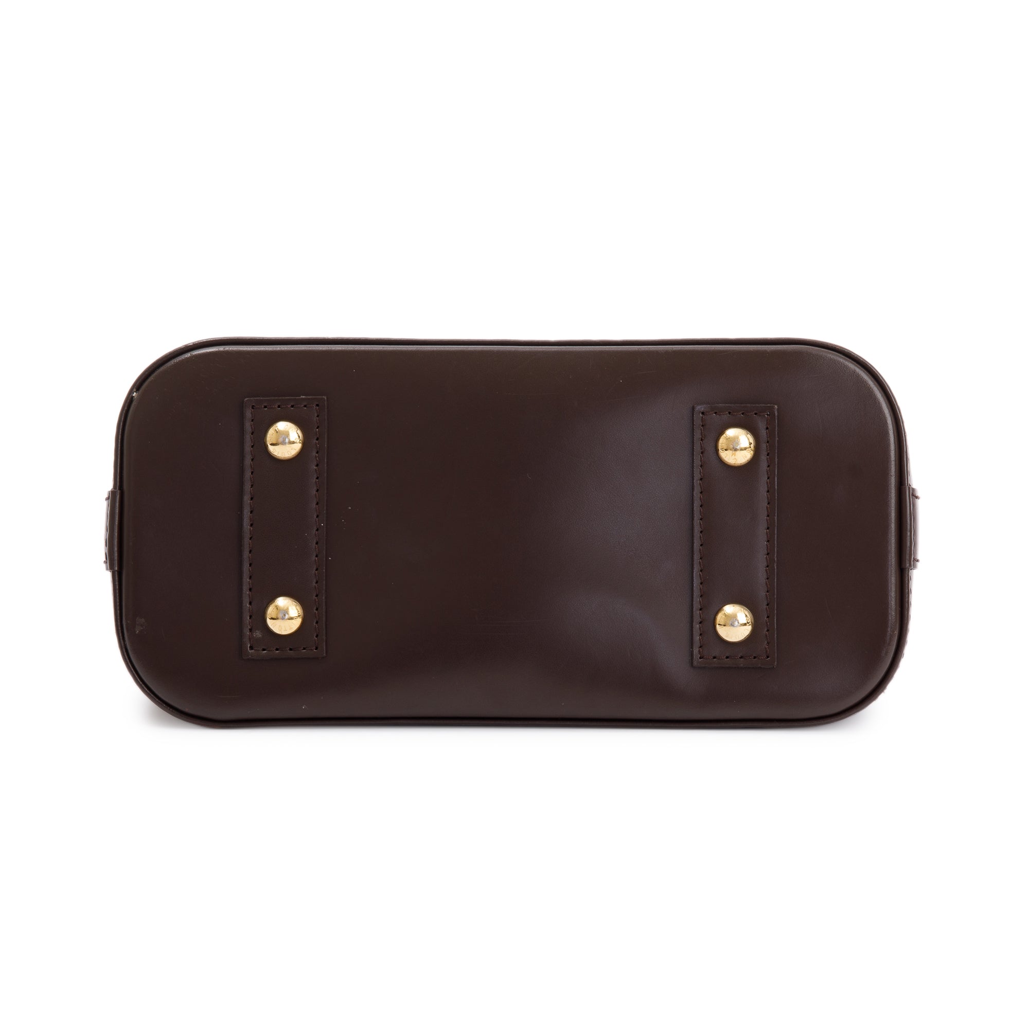 Condition: Very Good; minor surface scratches at hardware; slight scratches at exterior leather trim and handles; clean interior