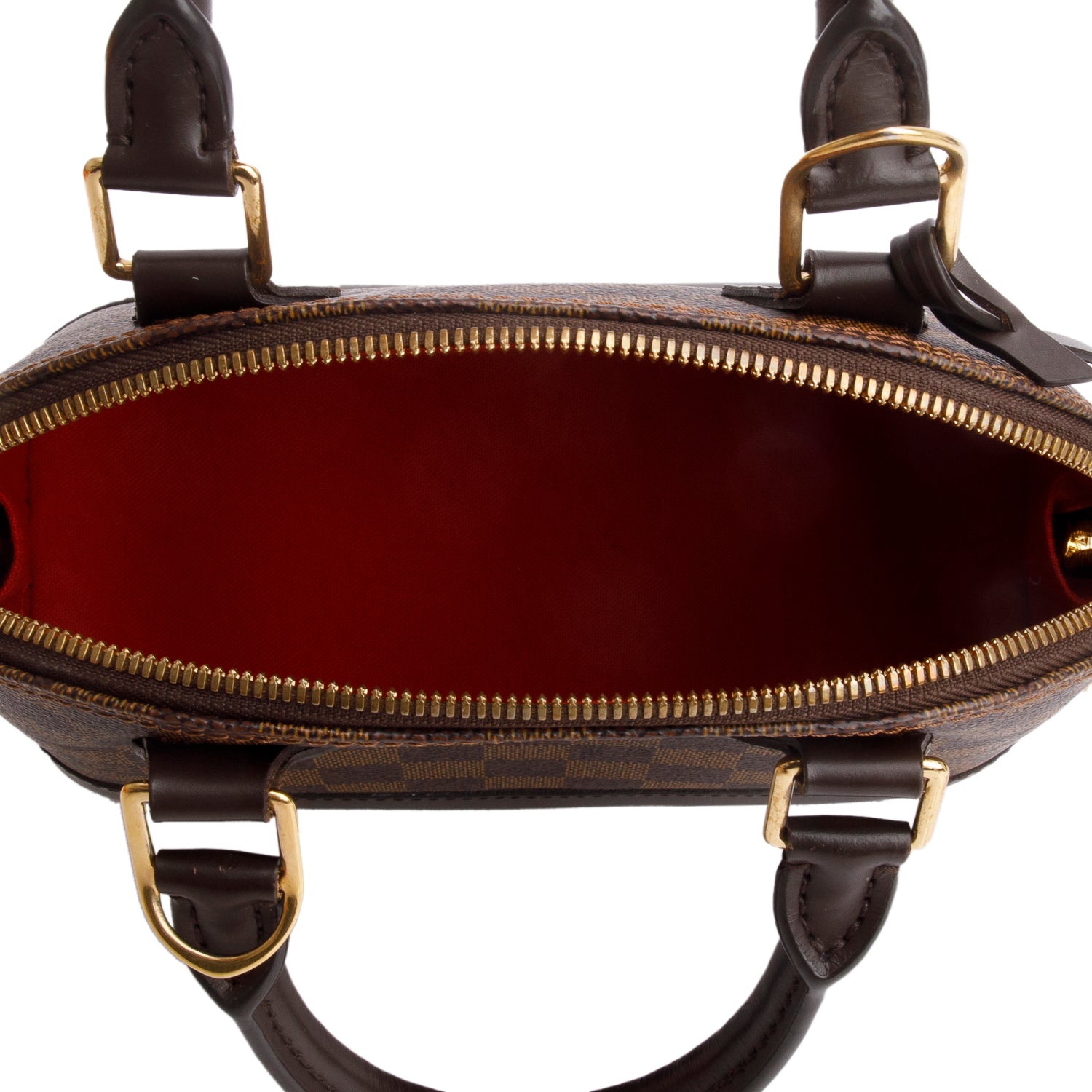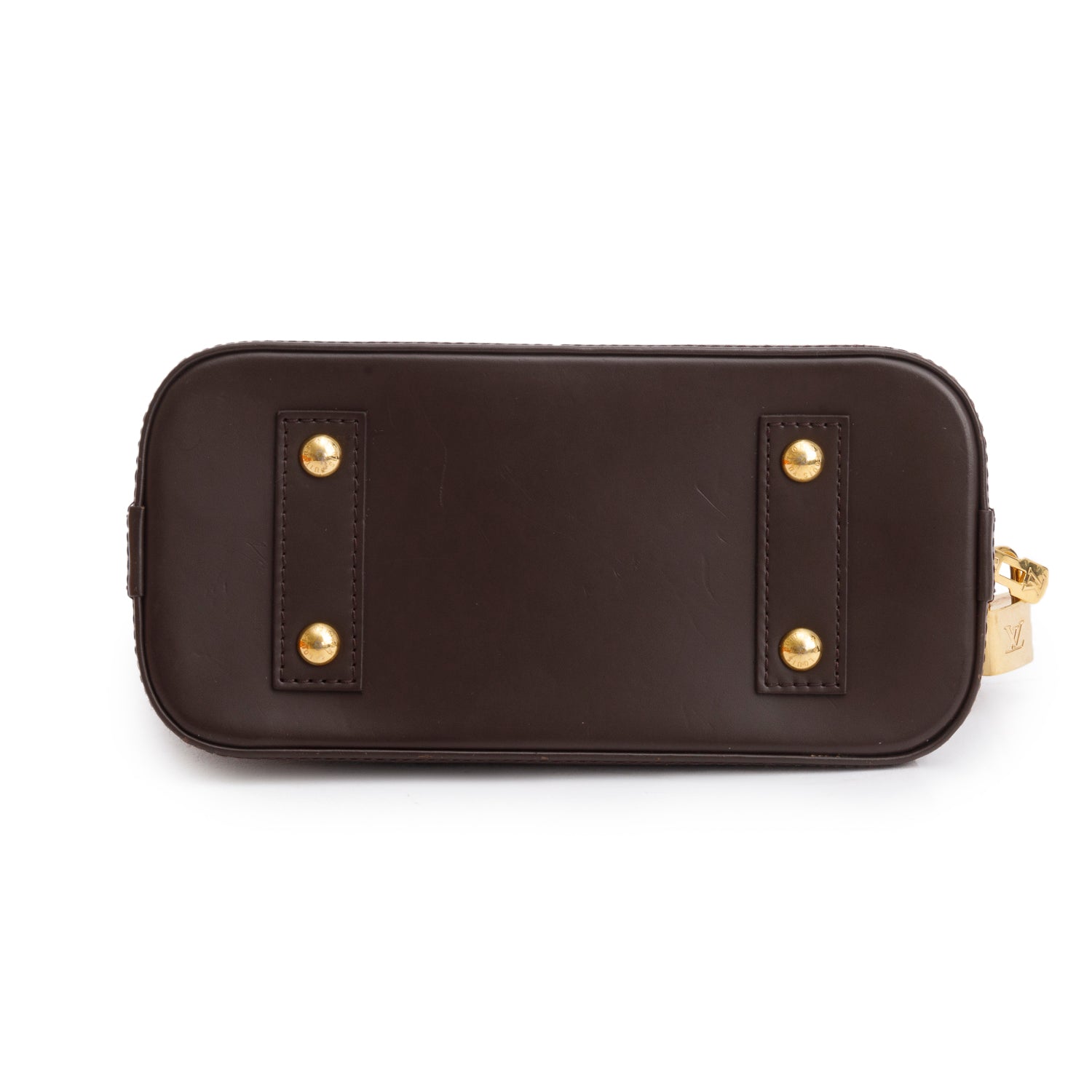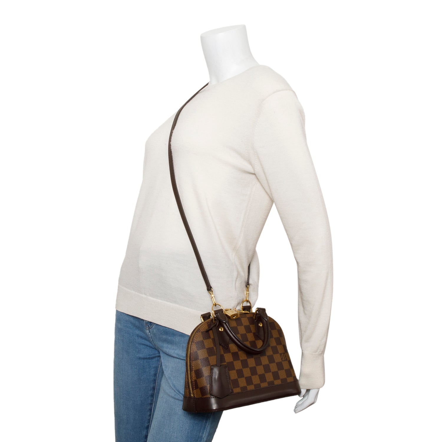 Condition: Very Good; minor scratches at hardware; minor scuffing at exterior corners; some creasing at handles and strap.