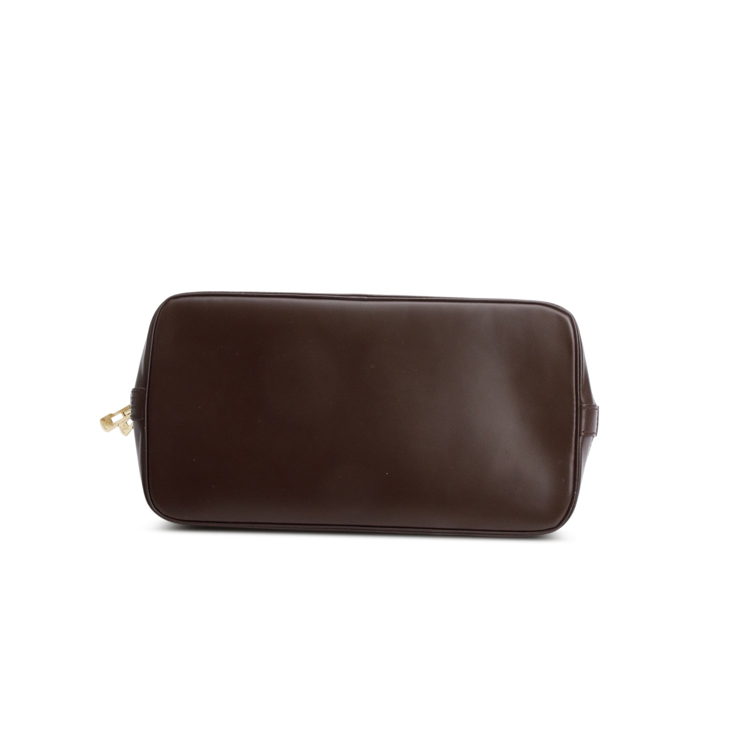 Condition: Very Good; minor scratches and scuffing at exterior leather base; minor creasing at handles; clean interior.