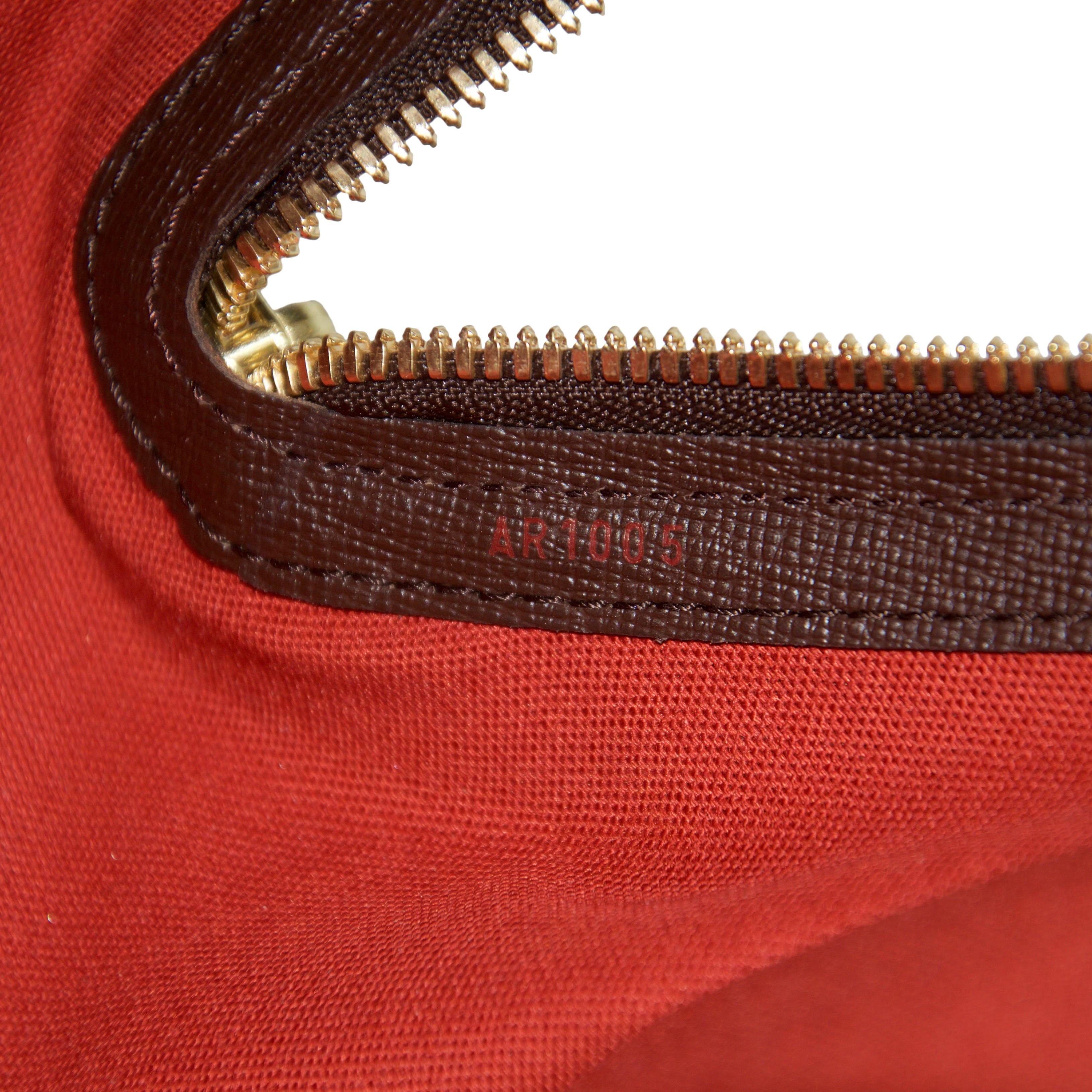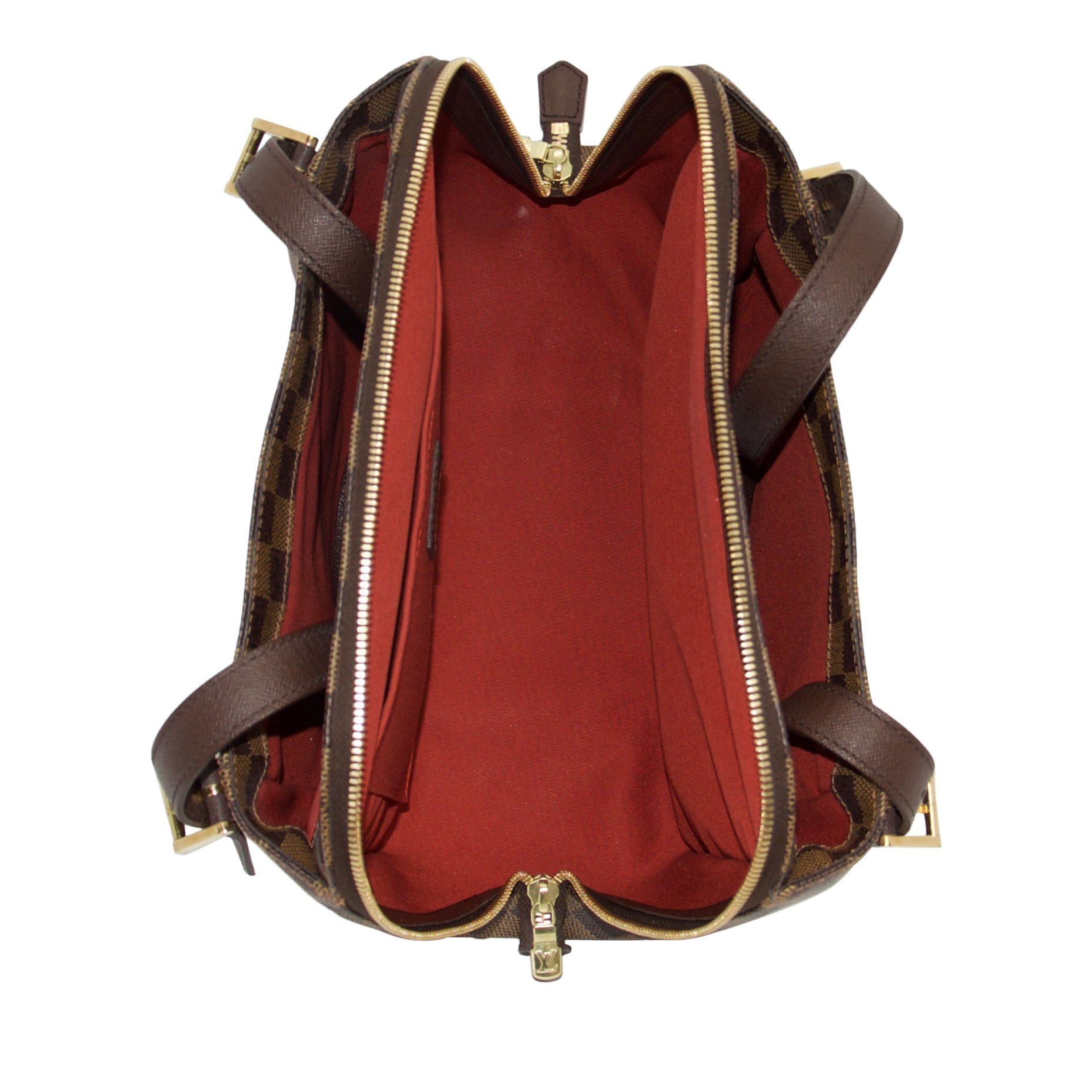 Condition: Very Good; minor surface scratches at hardware; slight staining at interior lining