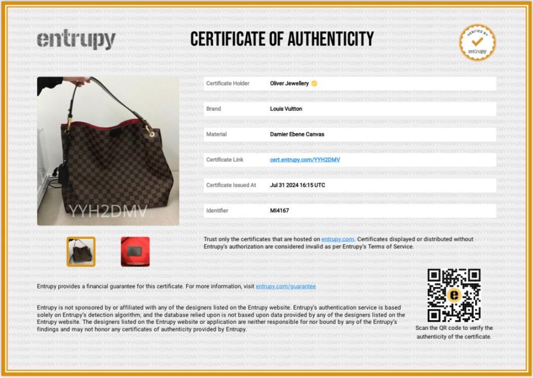 Luggage Tag, Receipt, Entrupy Certificate of Authenticity