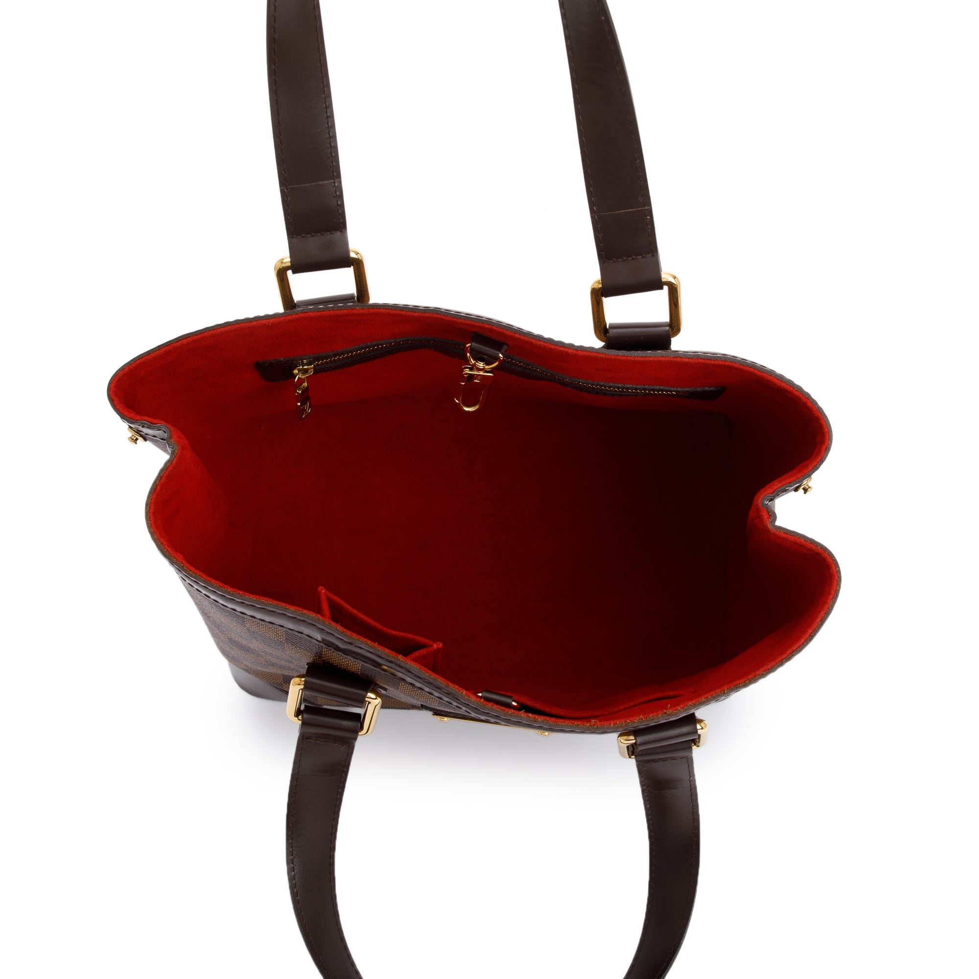 Condition: Very Good; slight scratches at hardware; slight scuffing at exterior bottom corners; slight creasing at exterior leather trim and straps; clean interior