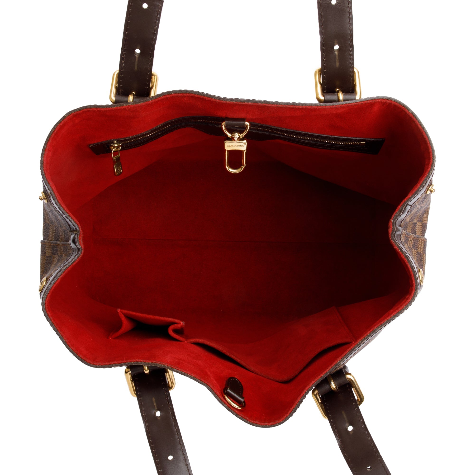 Condition: Good; some scratches at hardware; slight scuffing at exterior corners and edges; slight scratches at exterior leather trim; slight darkening at interior lining