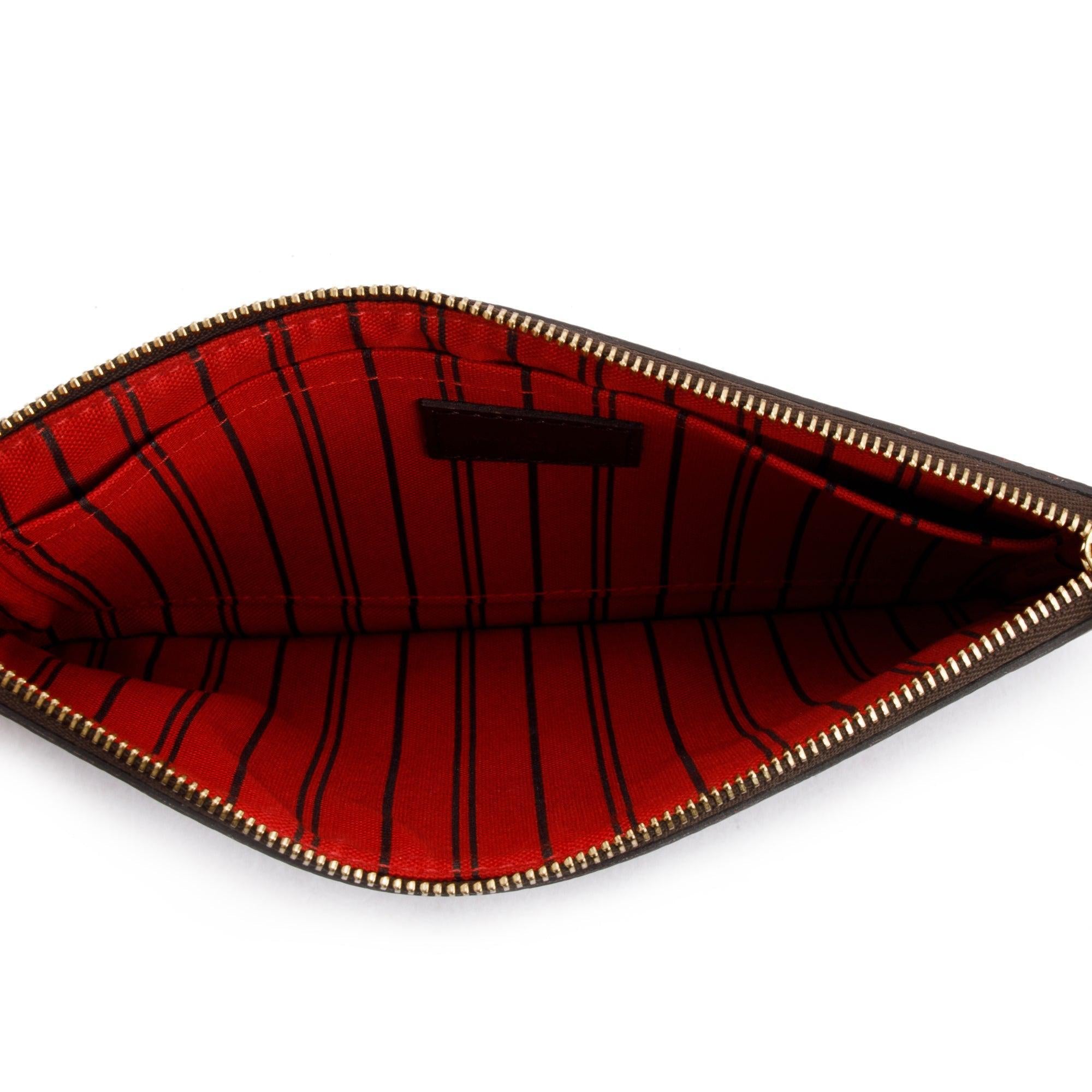 Condition: Very Good; minor scratches at hardware; slight scuffing at exterior corners; minor creasing at exterior; clean interior