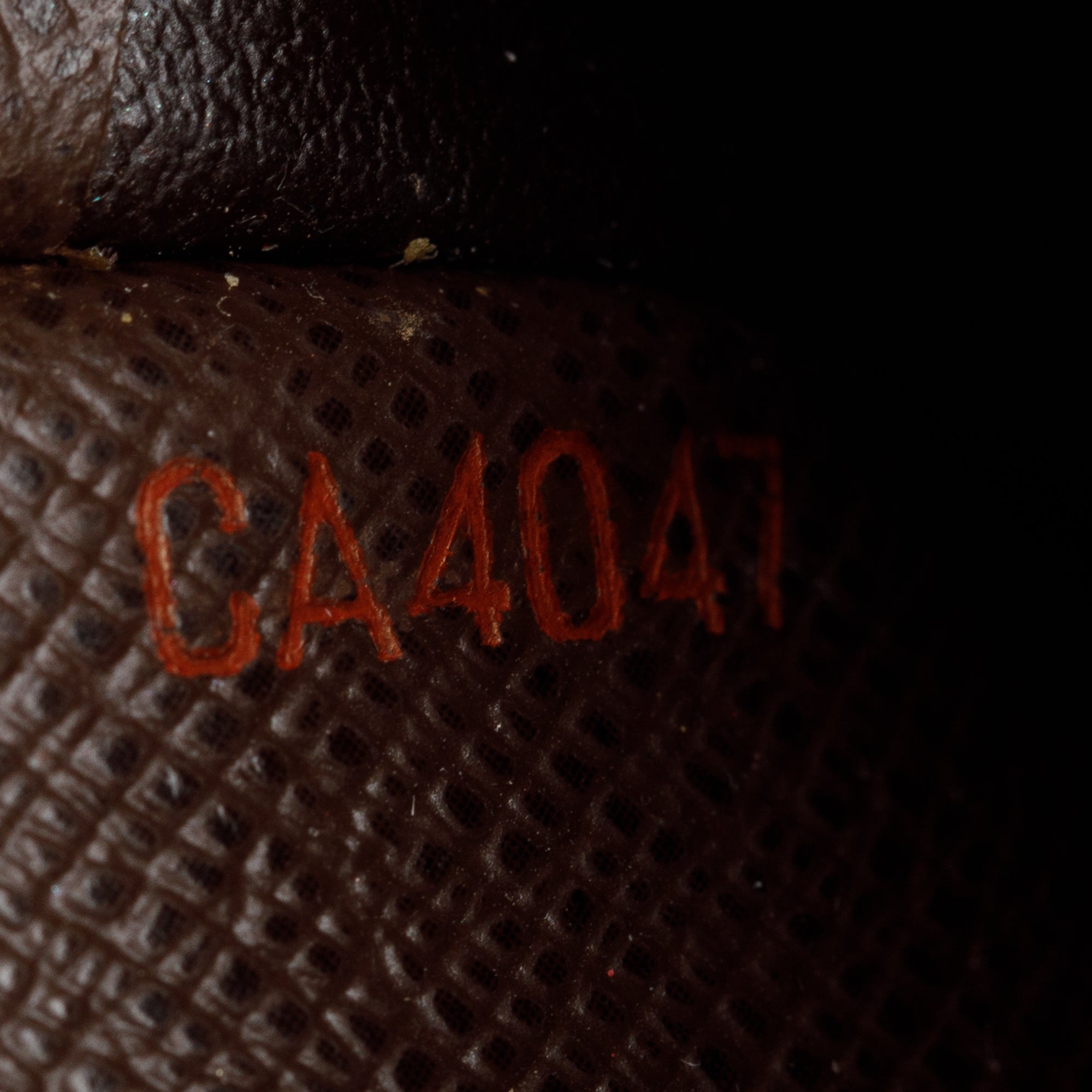 Condition: Very Good; slight scratches and tarnishing at hardware; slight scuffing at edges and corners; clean interior