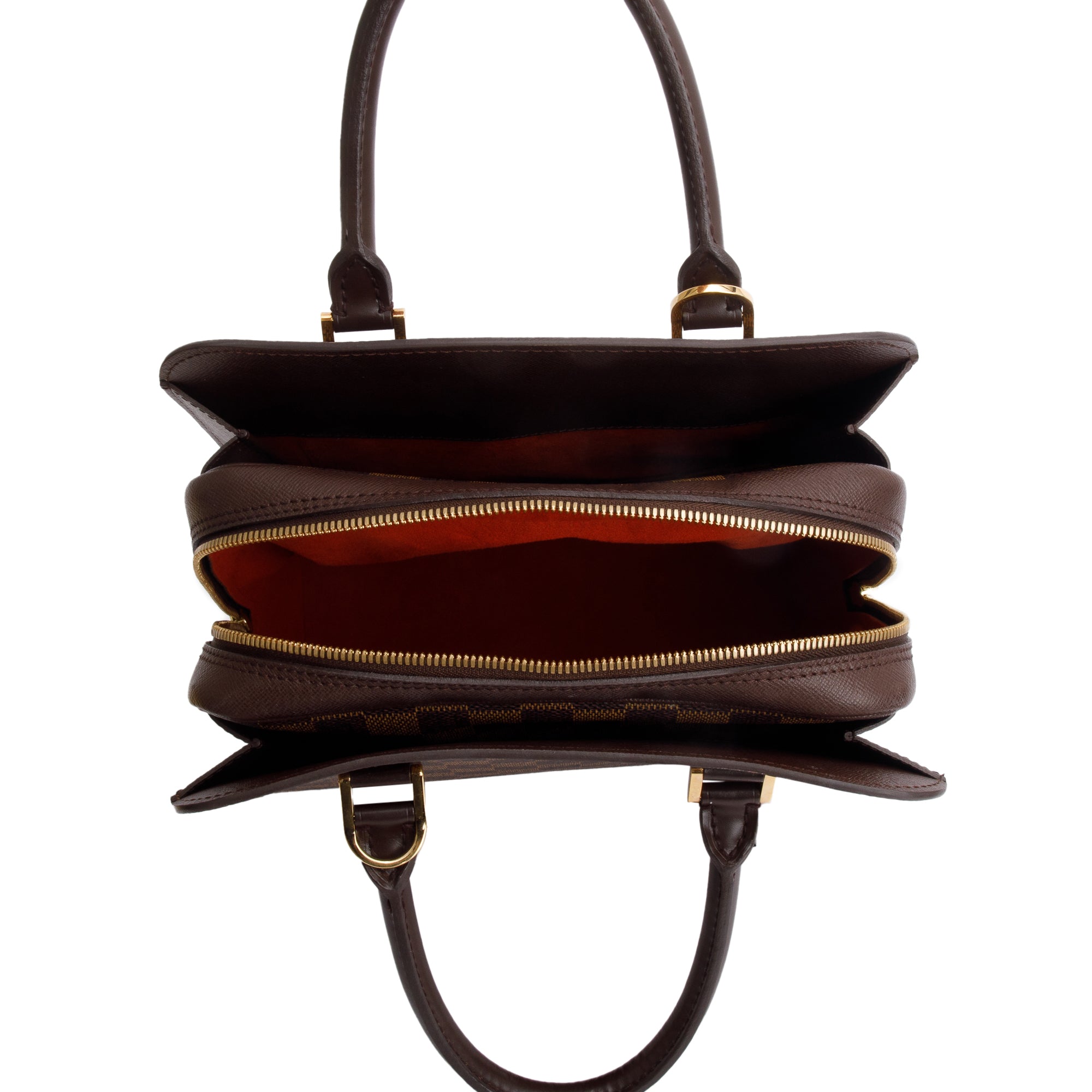Condition: Very Good; light scratches and tarnishing at hardware; slight creasing at exterior; clean interior