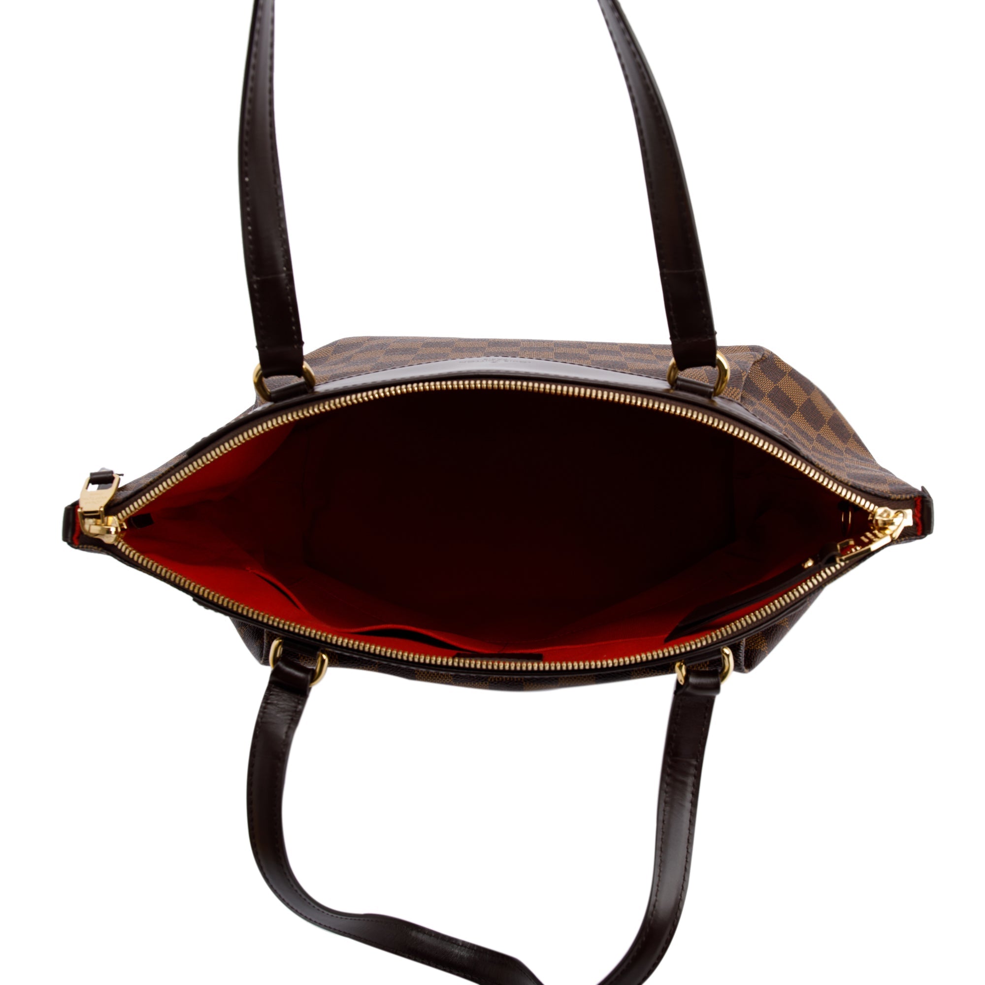 Condition: Very Good; slight surface scratches at hardware; slight scratches and creasing at exterior leather trim and shoulder straps; clean interior