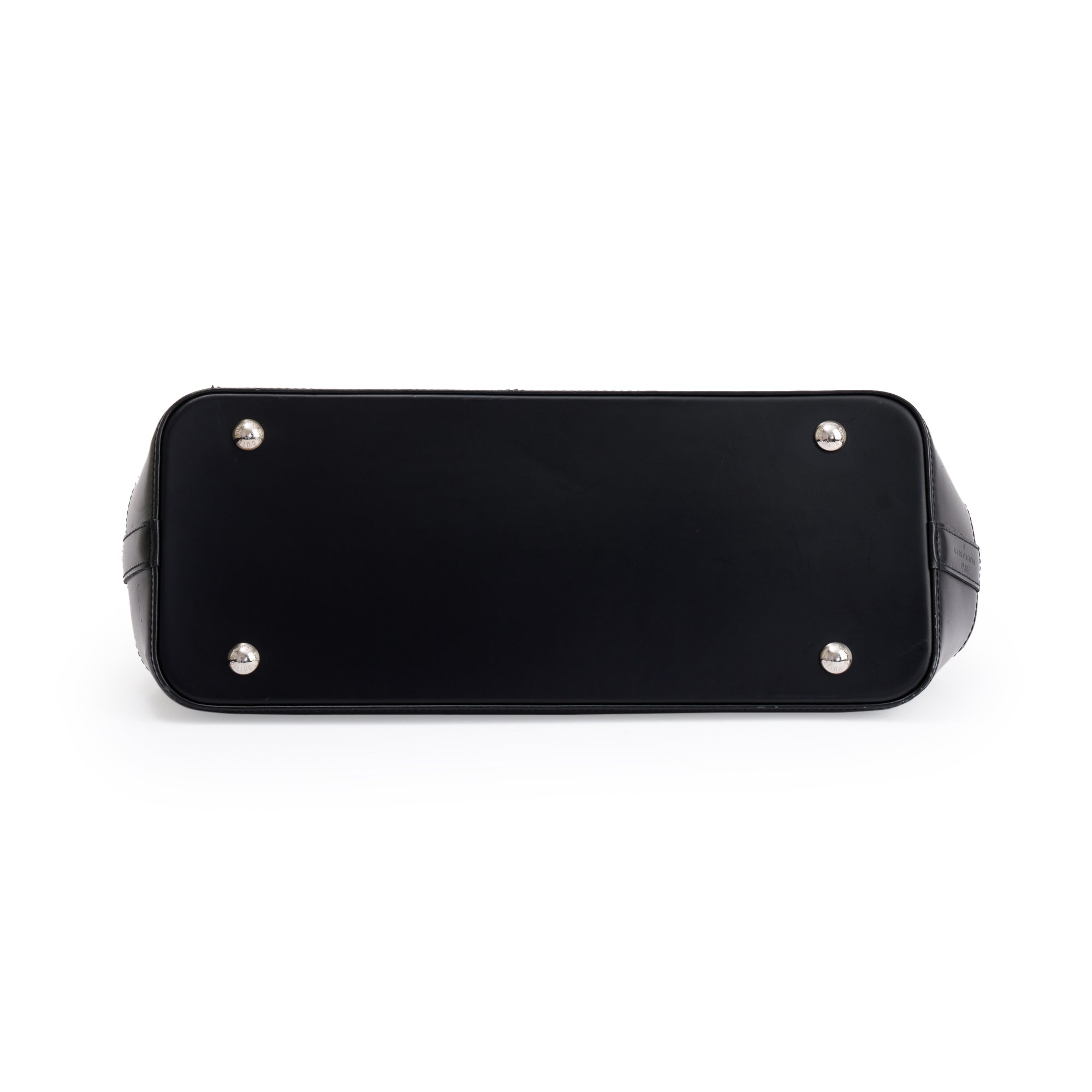 Condition: Good; slight scratches at hardware; faint scratches and slight creasing at exterior leather; light scuffing at exterior bottom corners; minor marks at interior