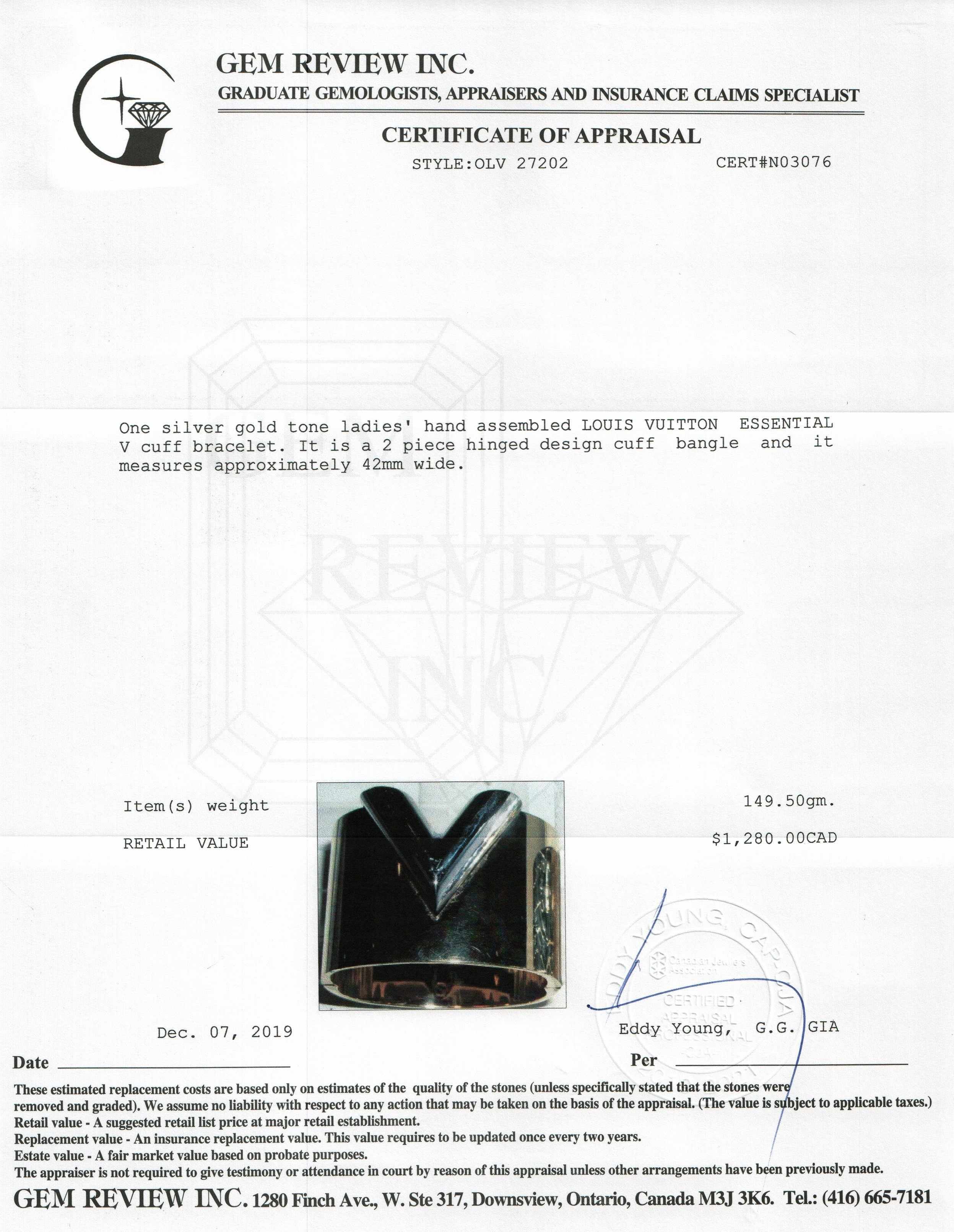 Louis Vuitton Essential V Cuff Bracelet