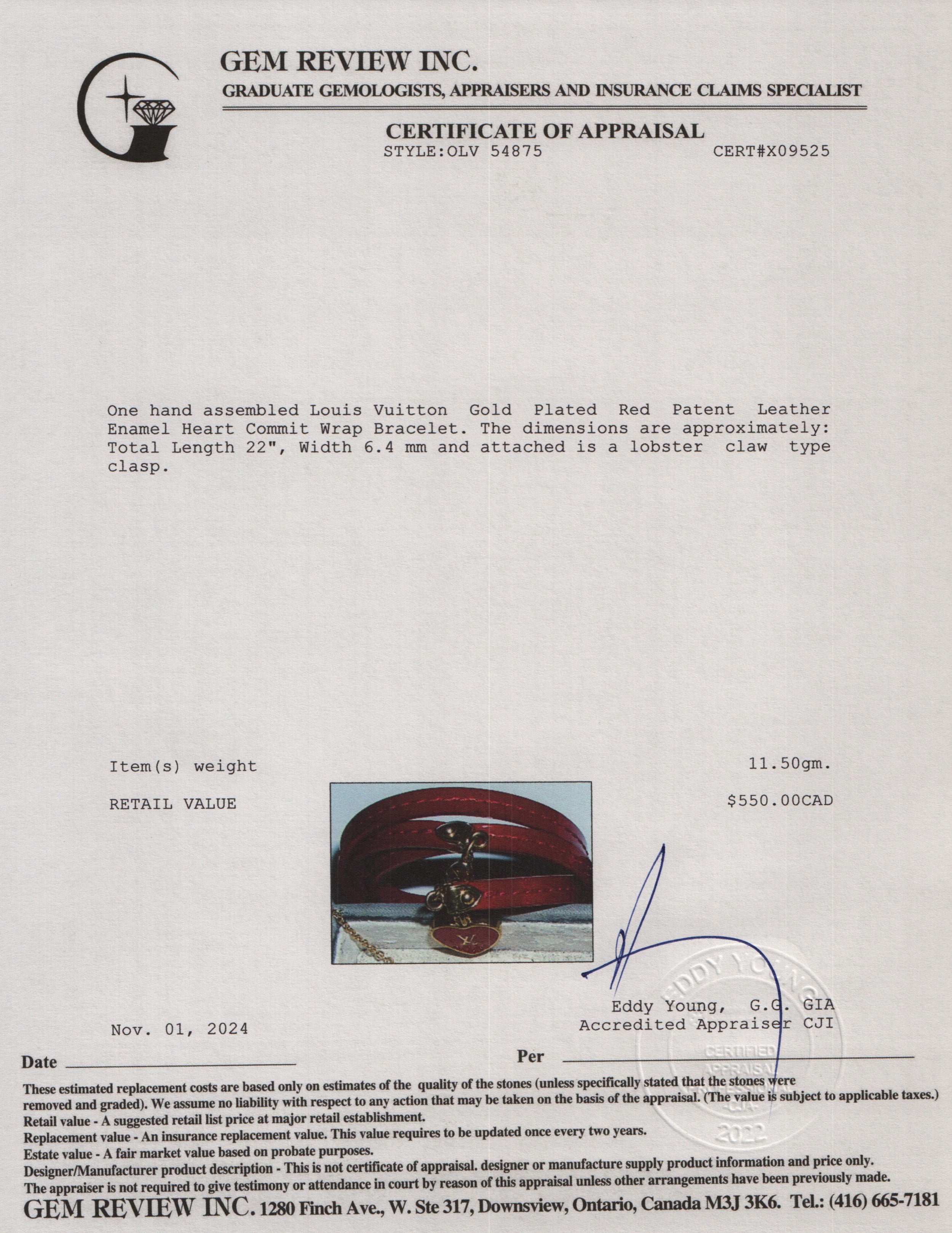 Gold Plated Red Patent Leather Enamel Heart Commit Wrap Bracelet
