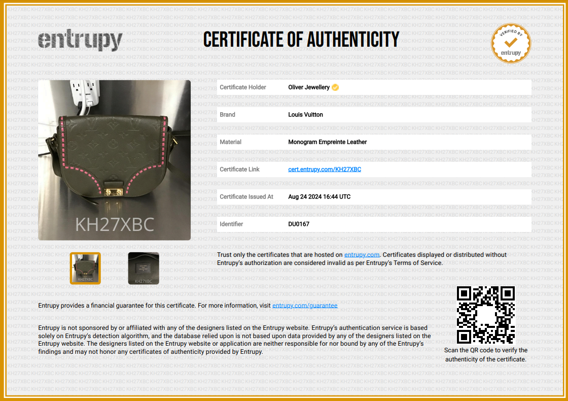 Dust Bag, Tassel, Entrupy Certificate of Authenticity