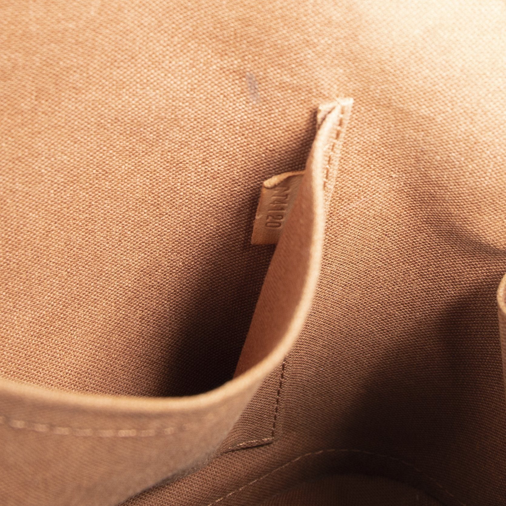 Condition: Fair; moderate surface scratches and tarnishing at hardware; moderate discolouration and scuffs at exterior leather trim and handles; some staining at interior lining