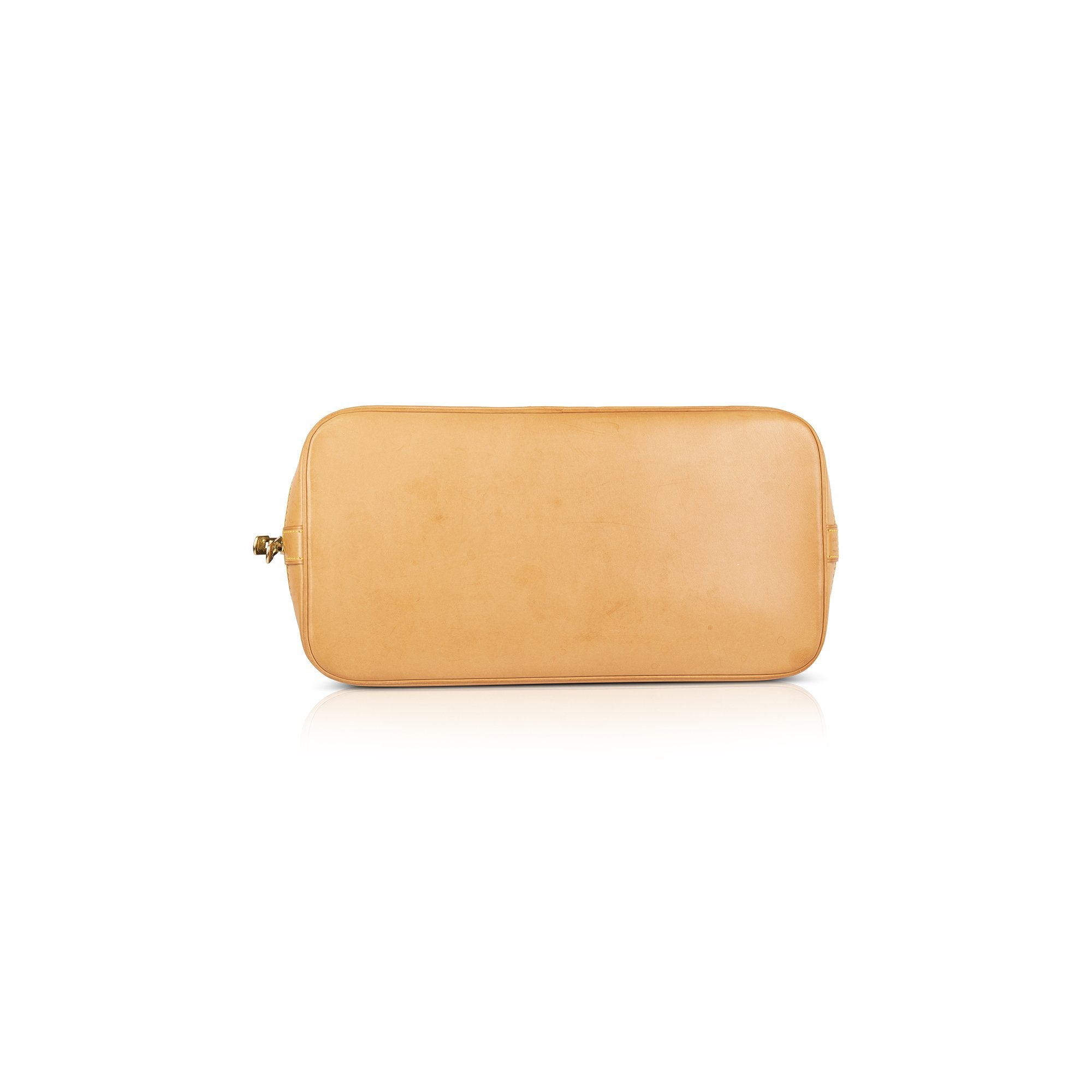 Condition: Good; slight surface scratches at hardware; some marks and discolouration at exterior vachetta leather trim and handles; clean interior