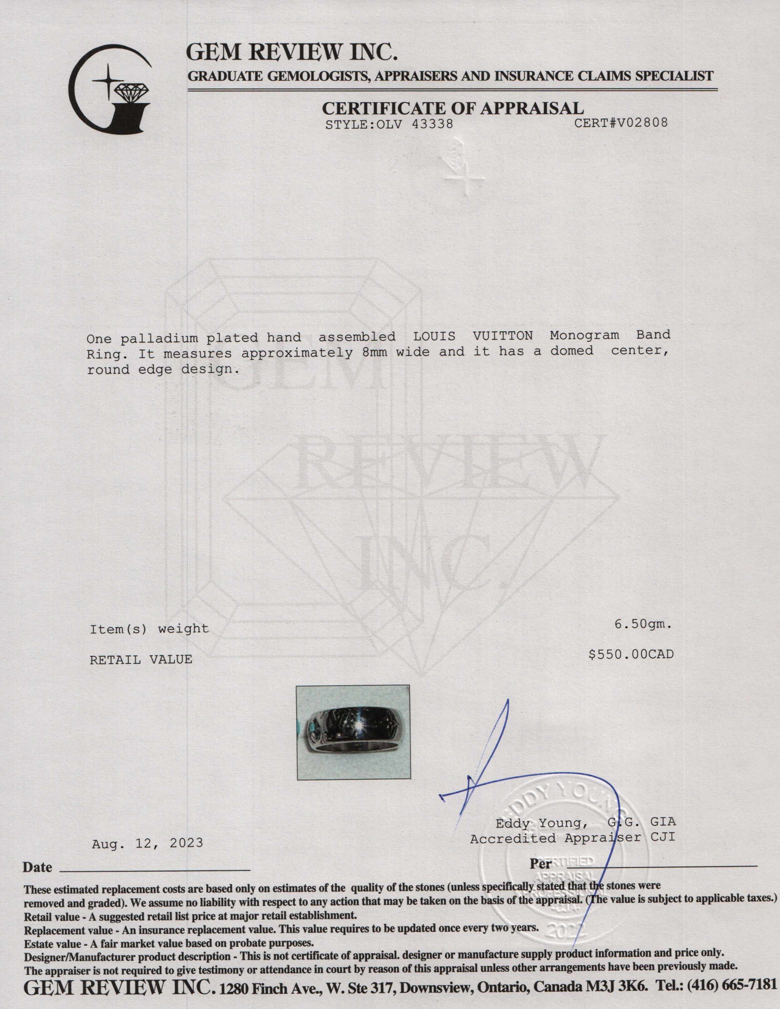 - Louis Vuitton Ring Size M, U.S. Size 9