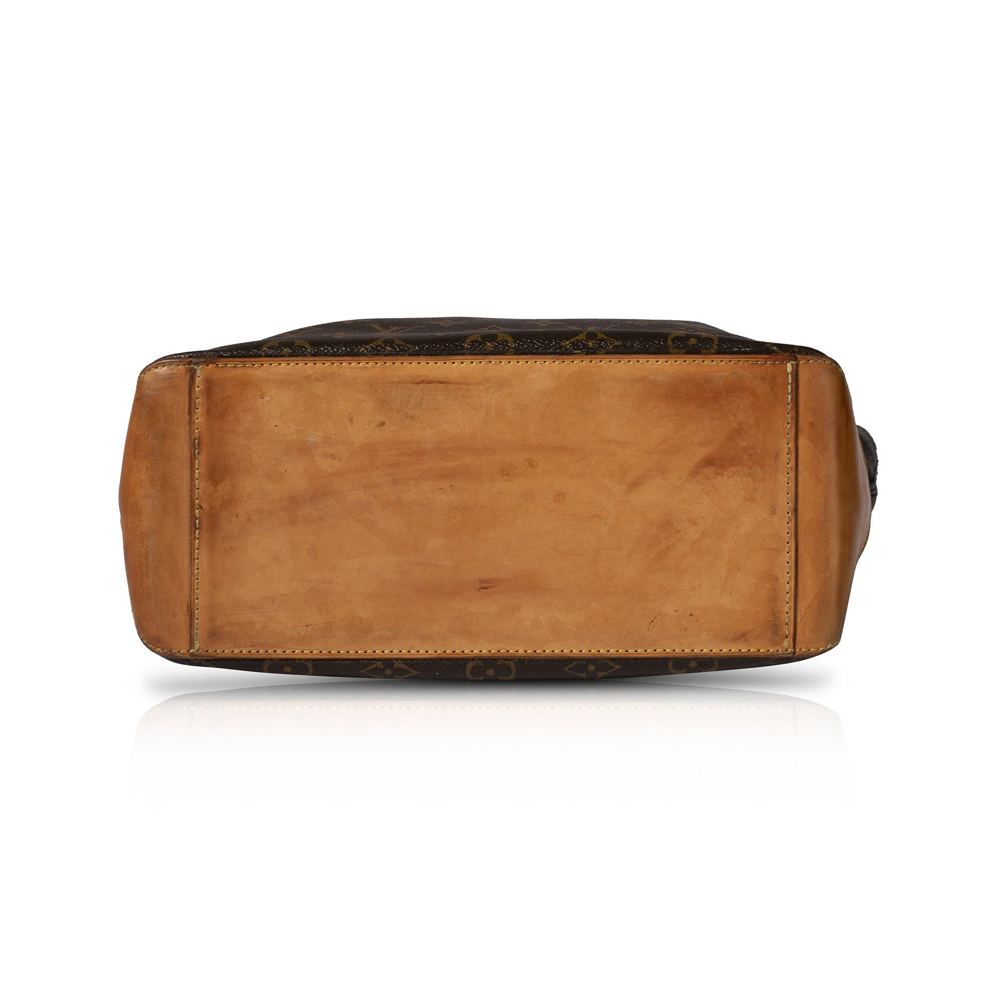 Condition: Good; moderate surface scratches and tarnishing at hardware; moderate marks, scuffing, and discolouration at exterior leather trim and shoulder straps; clean interior