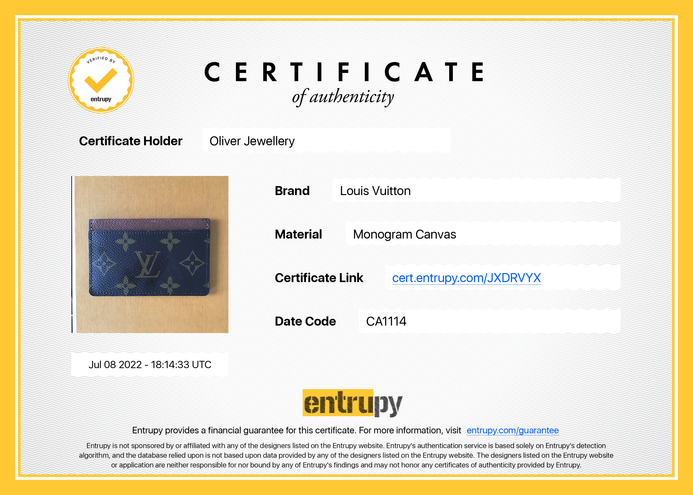 Included Items: Entrupy Certificate of Authenticity #: JXDRVYX