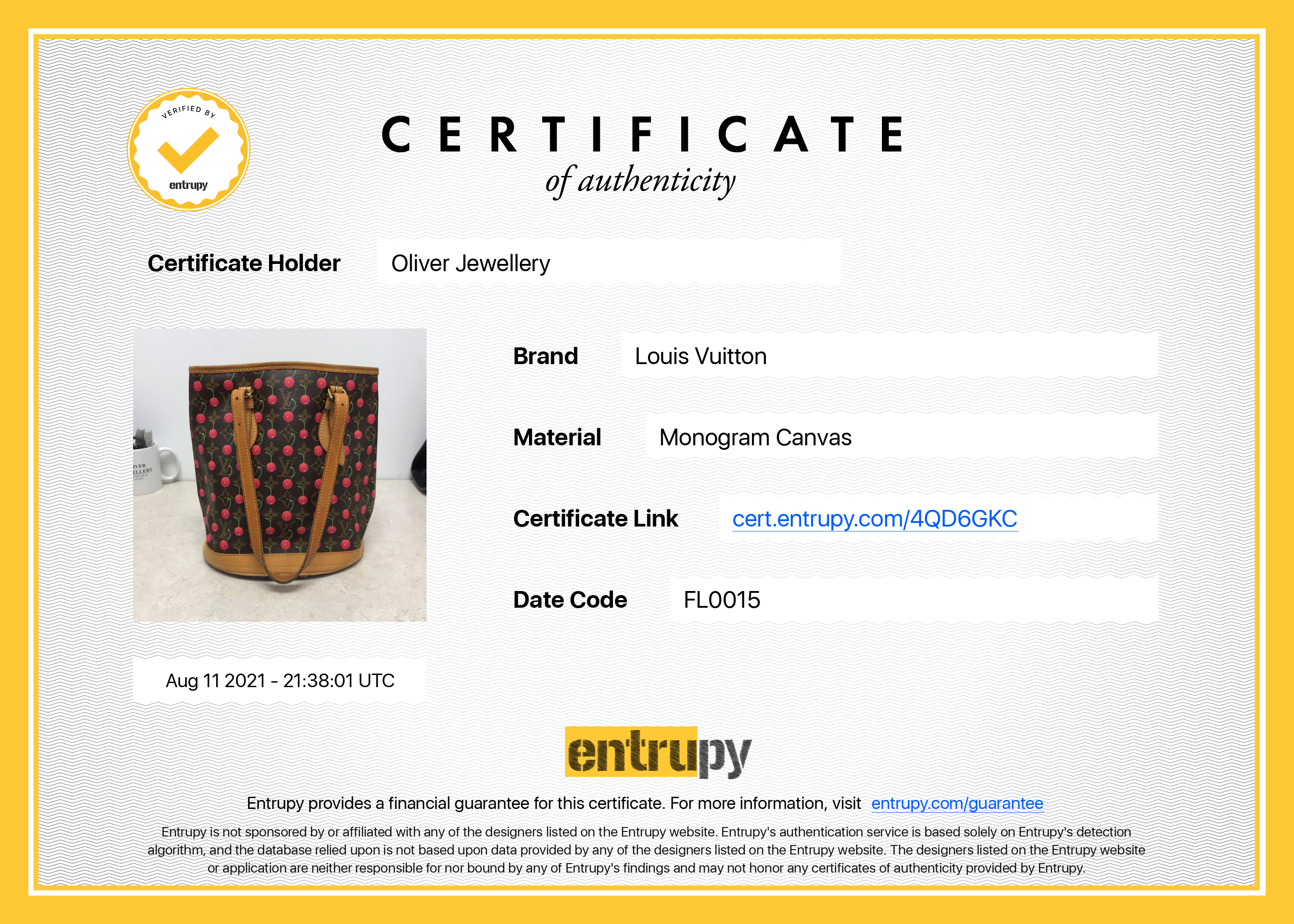 Included Items: Original Louis Vuitton Dust Bag & Entrupy Certificate of Authenticity #: 4QD6GKC