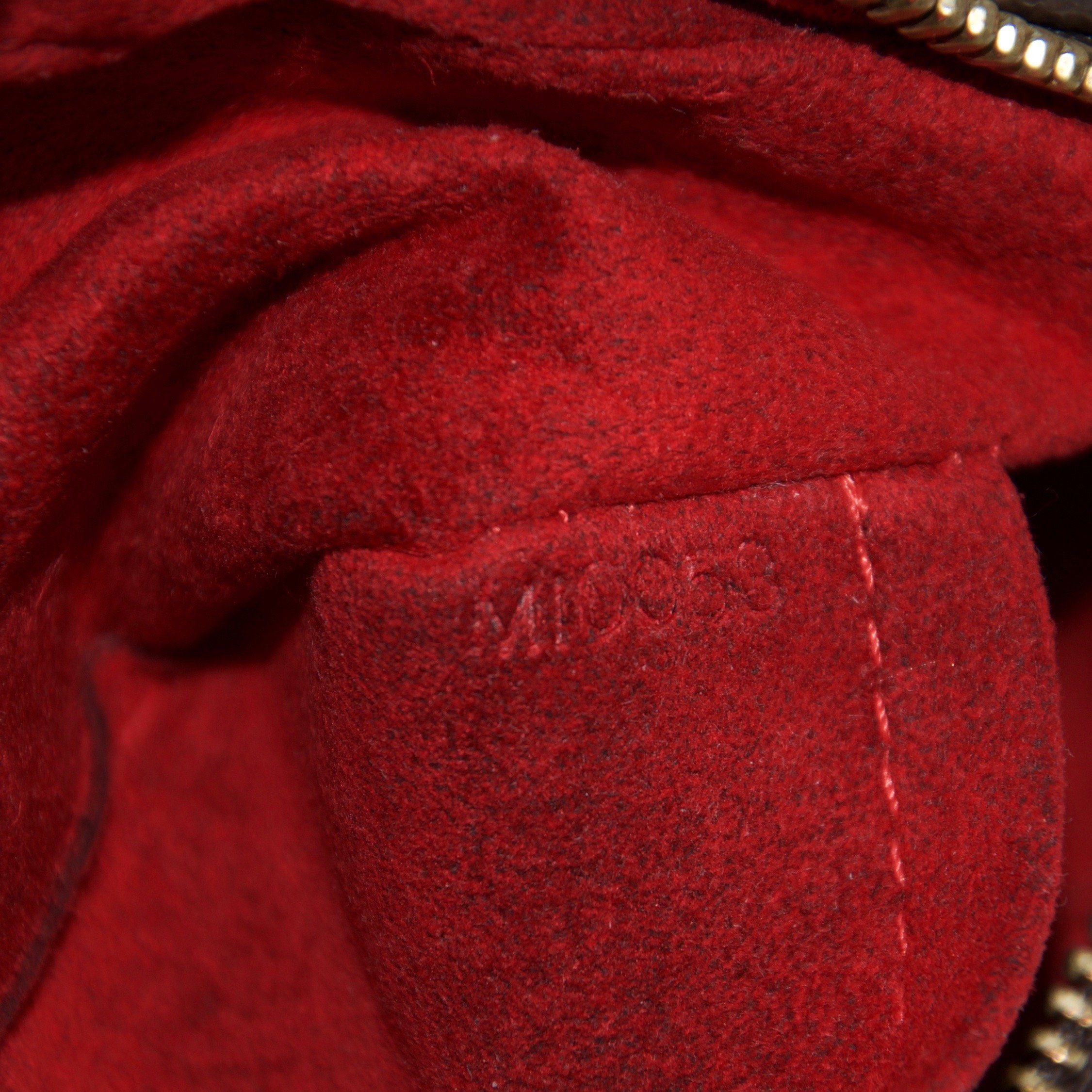 Condition: Very Good; slight surface scratches at hardware; slight wear and discolouration at leather trim and shoulder strap; clean interior