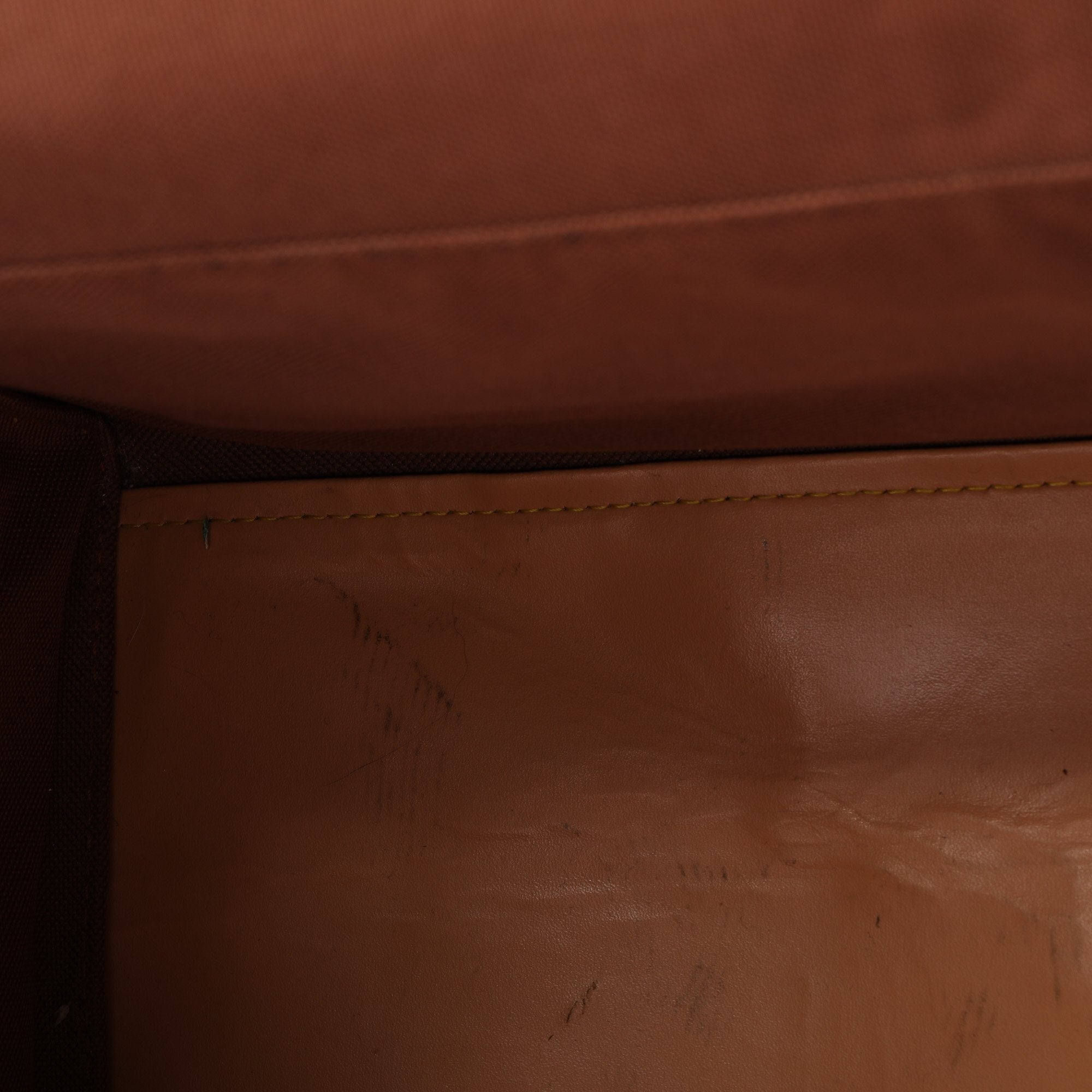 Condition: Very Good; minor surface scratches at hardware; light scuffs and discolouration at exterior leather trim and handles; light marks at interior leather base lining; one piece of side snap closure missing