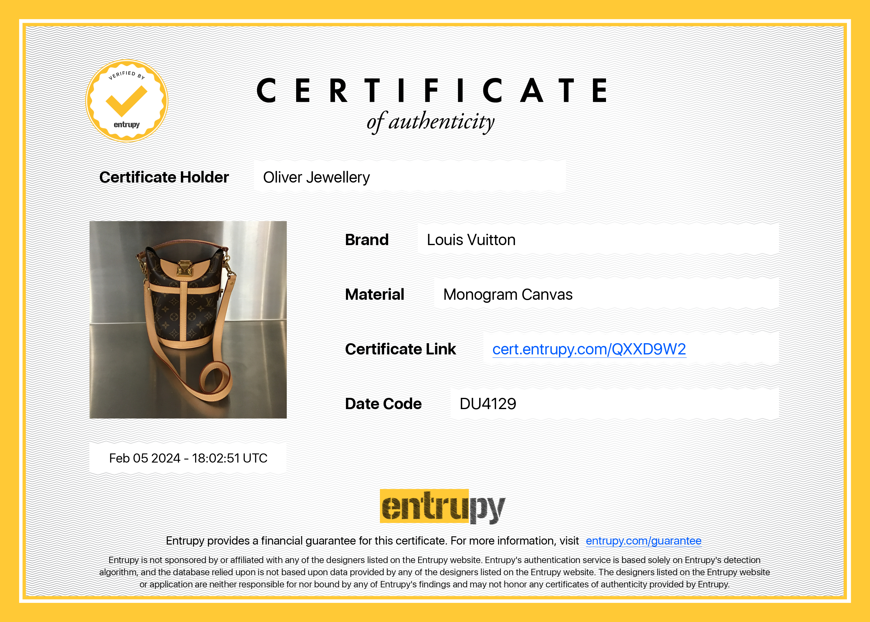 Dust Bag, Detachable Straps, Entrupy certificate of Authenticity