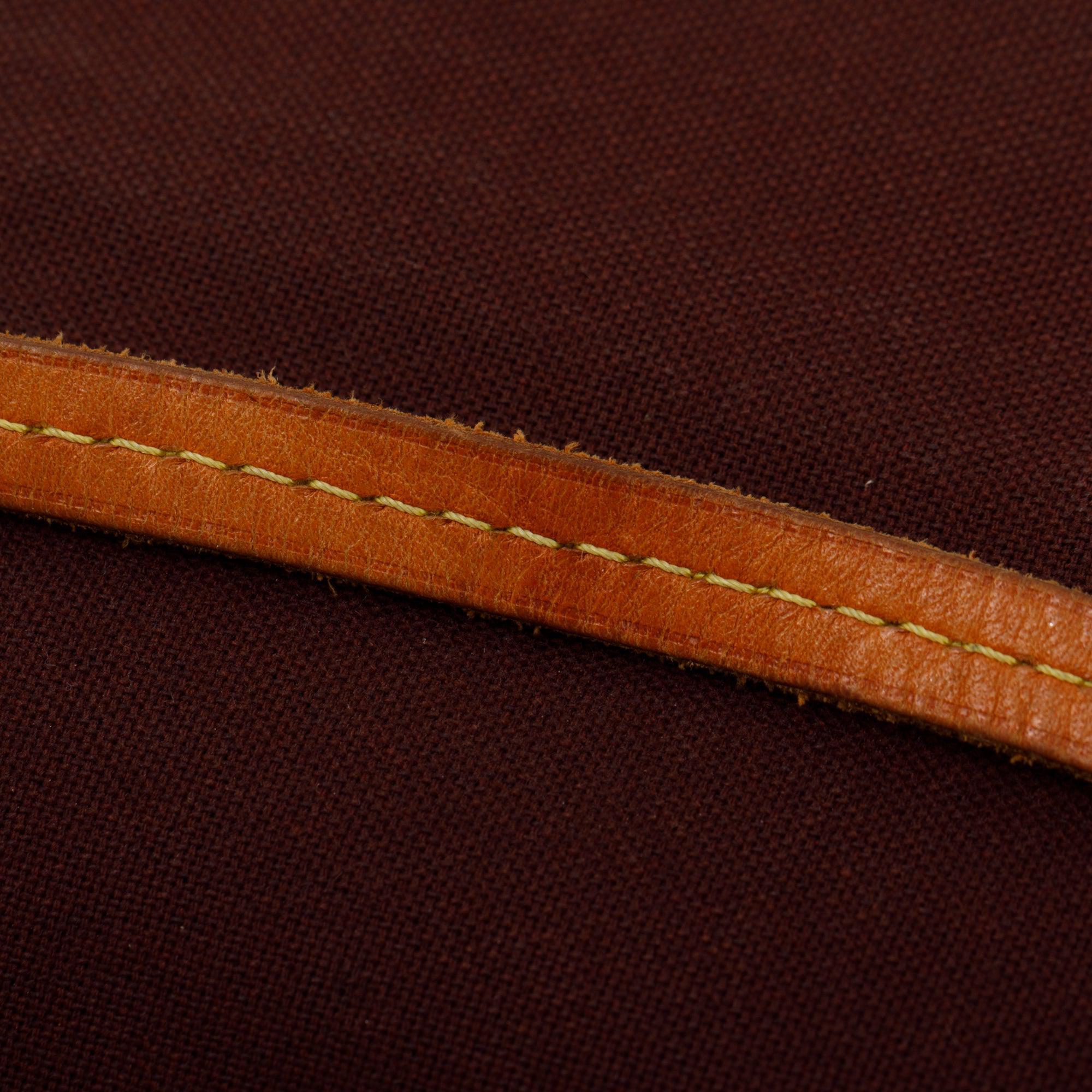 Condition: Good; some surface scratches and tarnishing at hardware; moderate wear, discolouration, and creasing of vacheta leather strap; clean interior