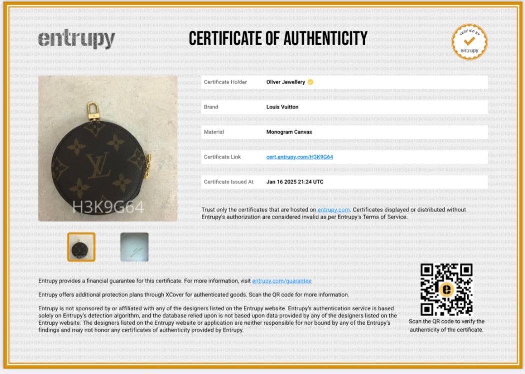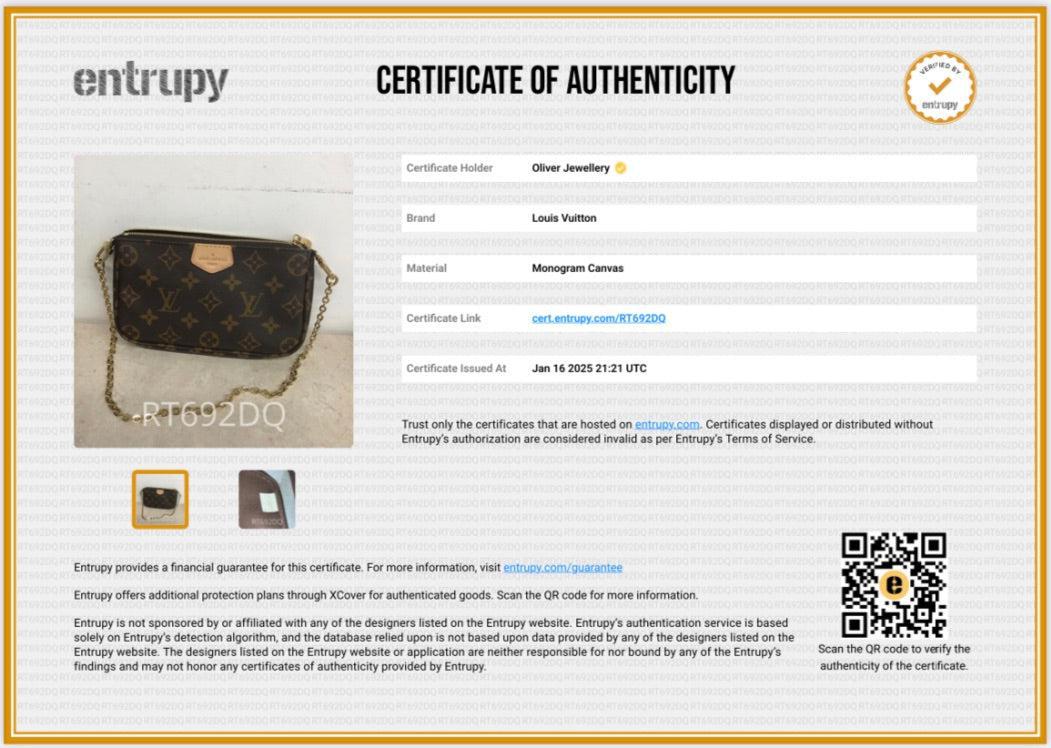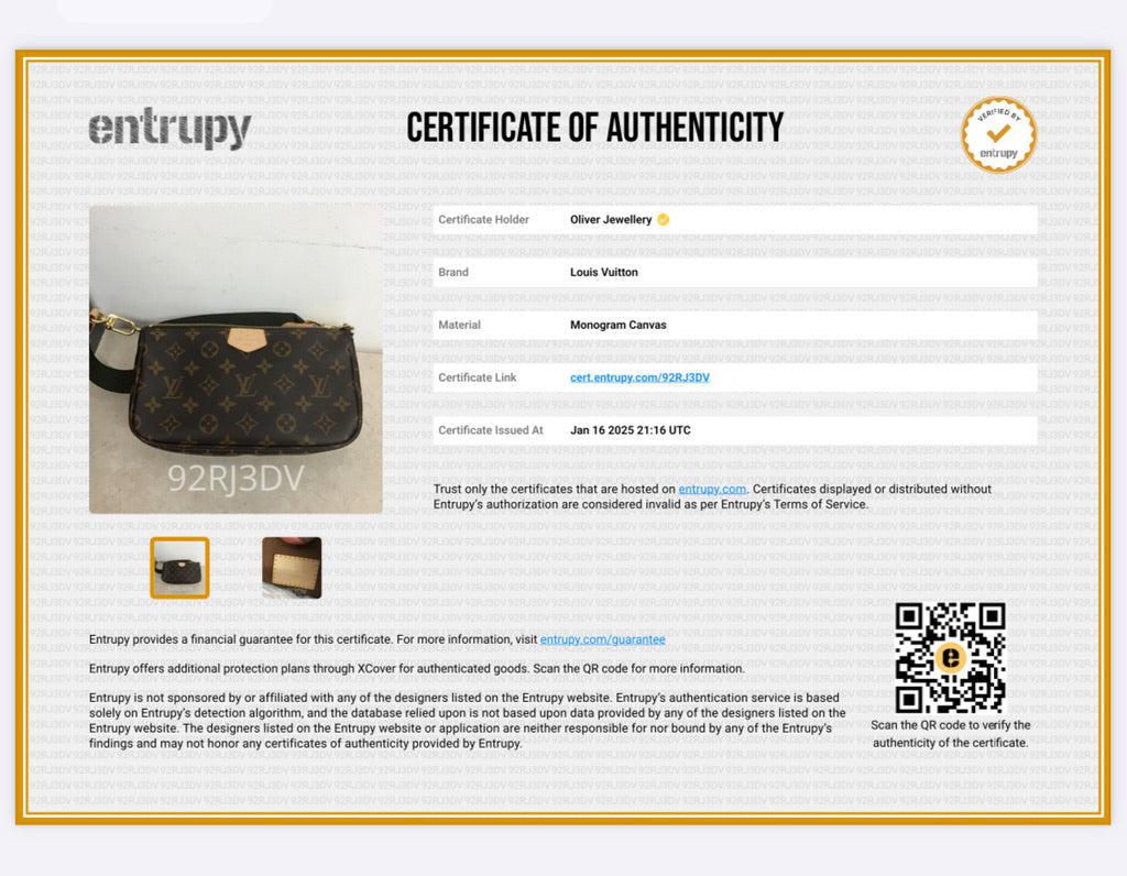 Box, Dust Bag, Removal Zip Coin Purse, Removal Mini Pochette, Entrupy Certificate of Authenticity