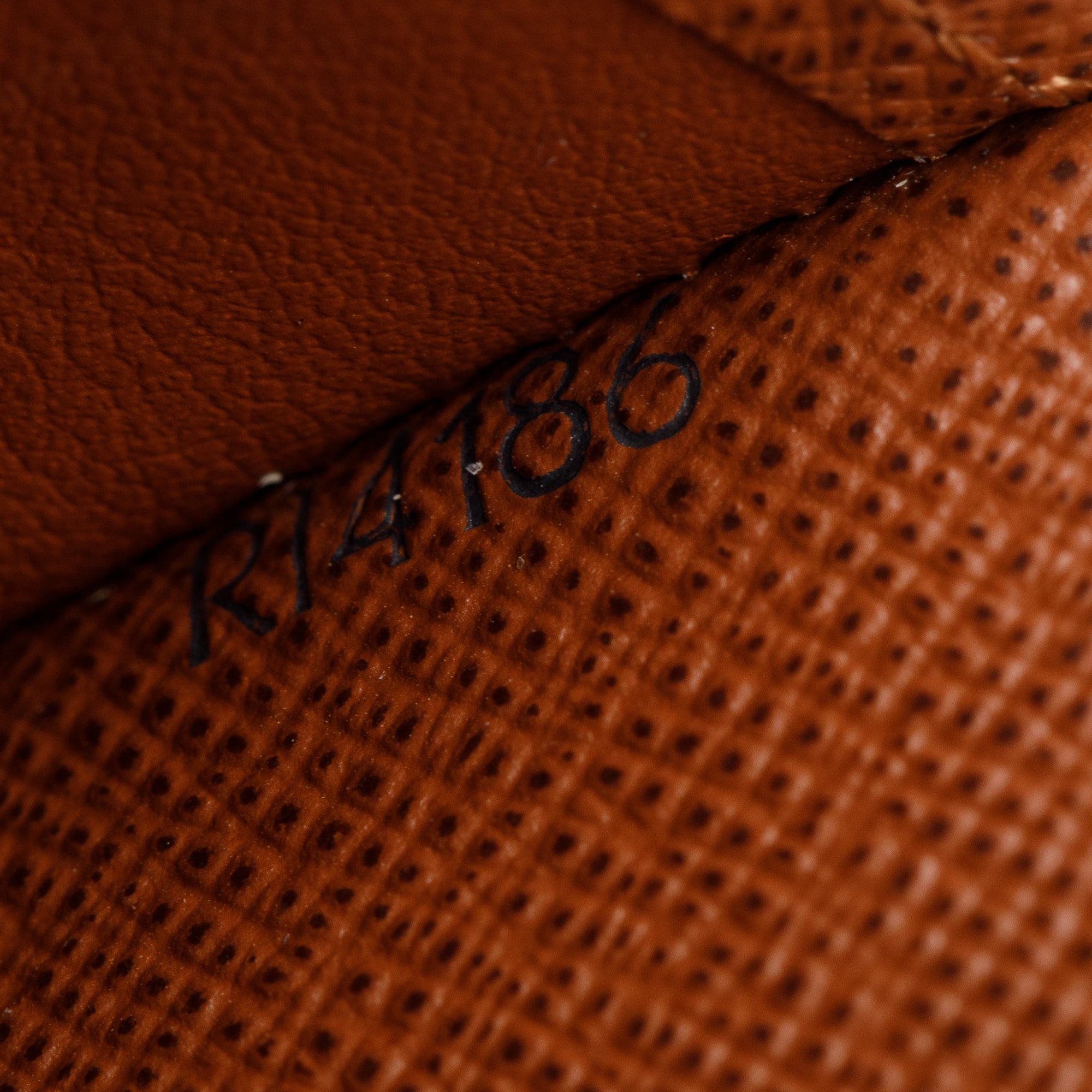 Condition: Very Good; light scratches at interior hardware; light creasing and indentations at interior