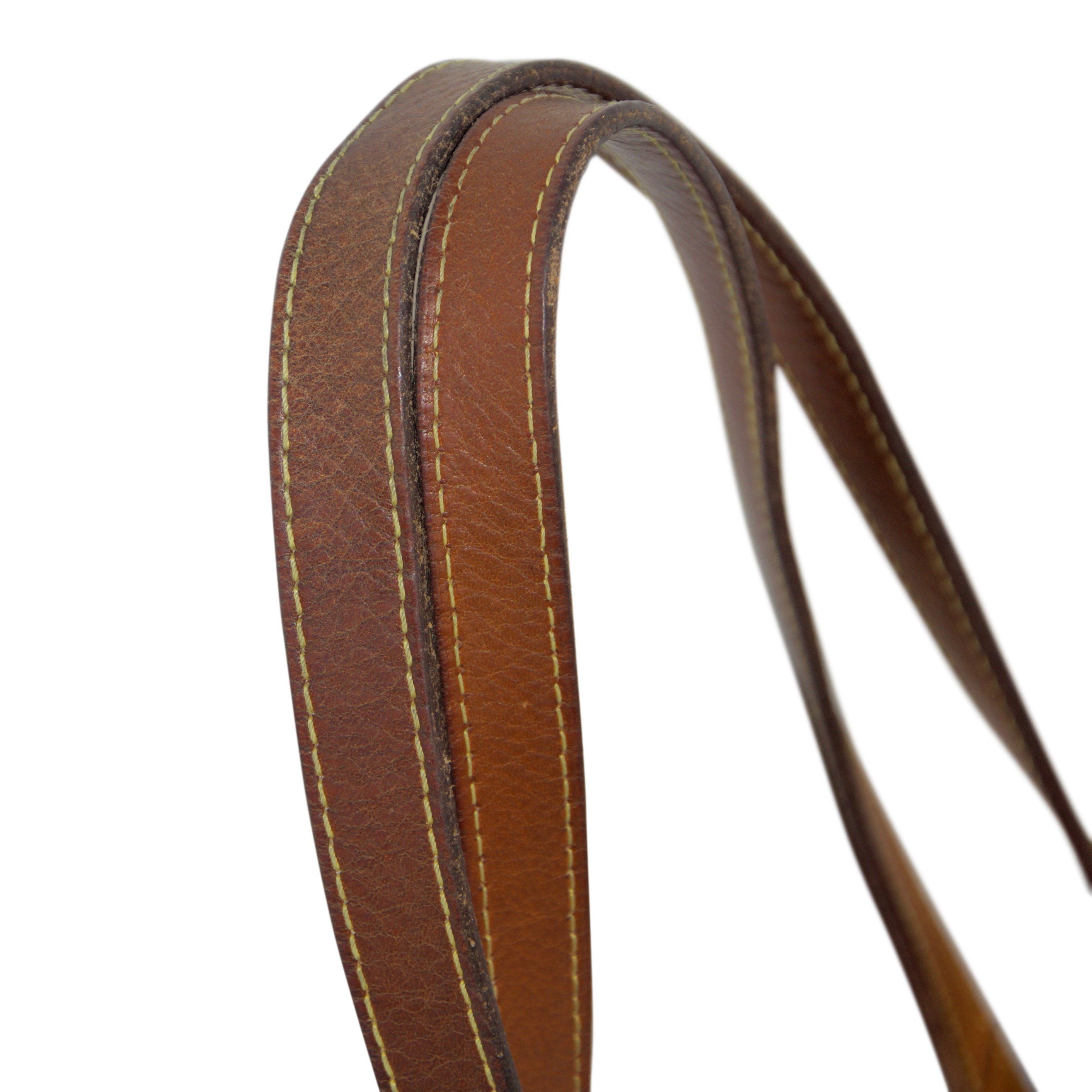 Condition: Good, light marks and creasing at leather shoulder straps, some staining at interior lining.