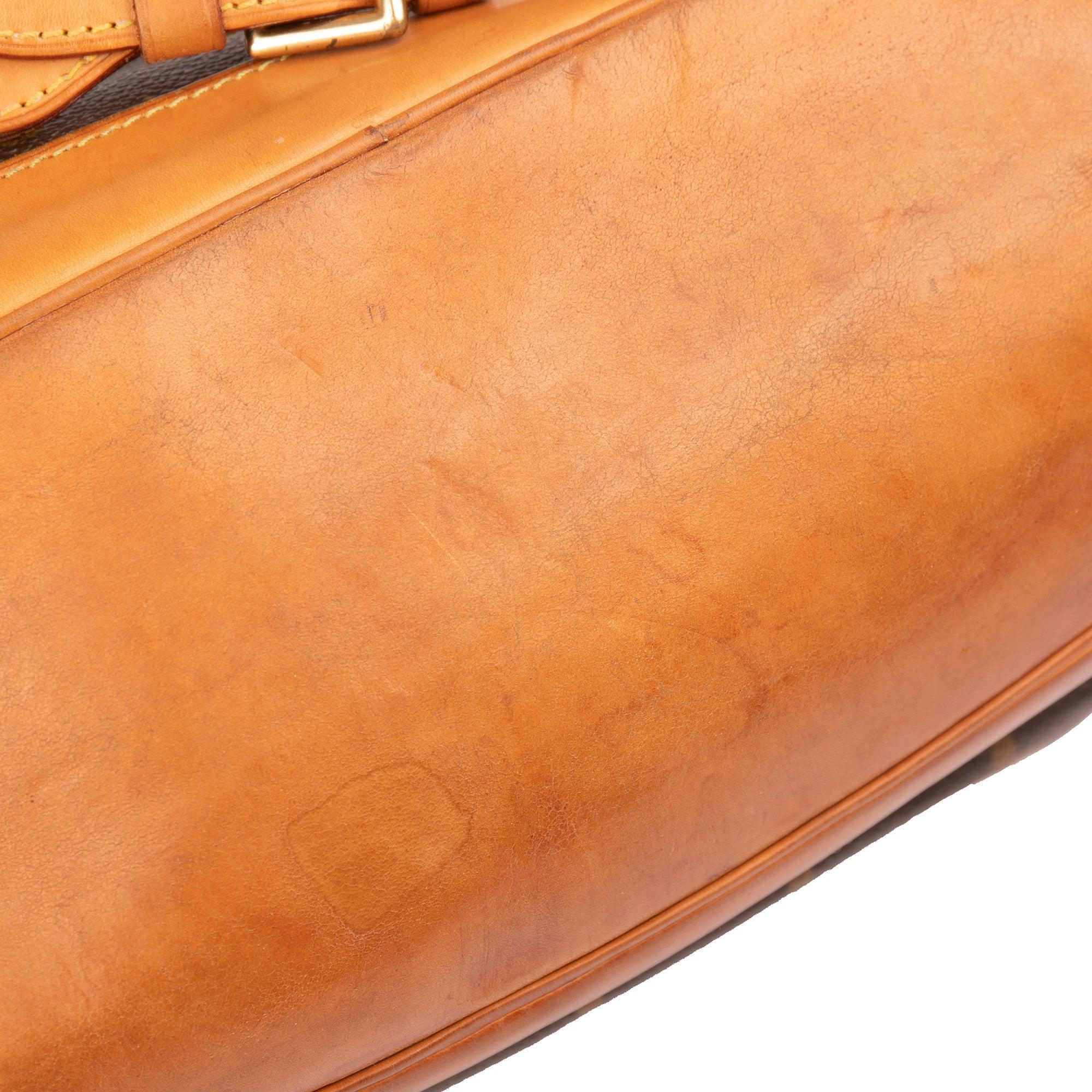 Condition: Good; some scratches and tarnishing at hardware; moderate scuffs, scratches, and discolouration at exterior vachetta leather trim and straps; clean interior
