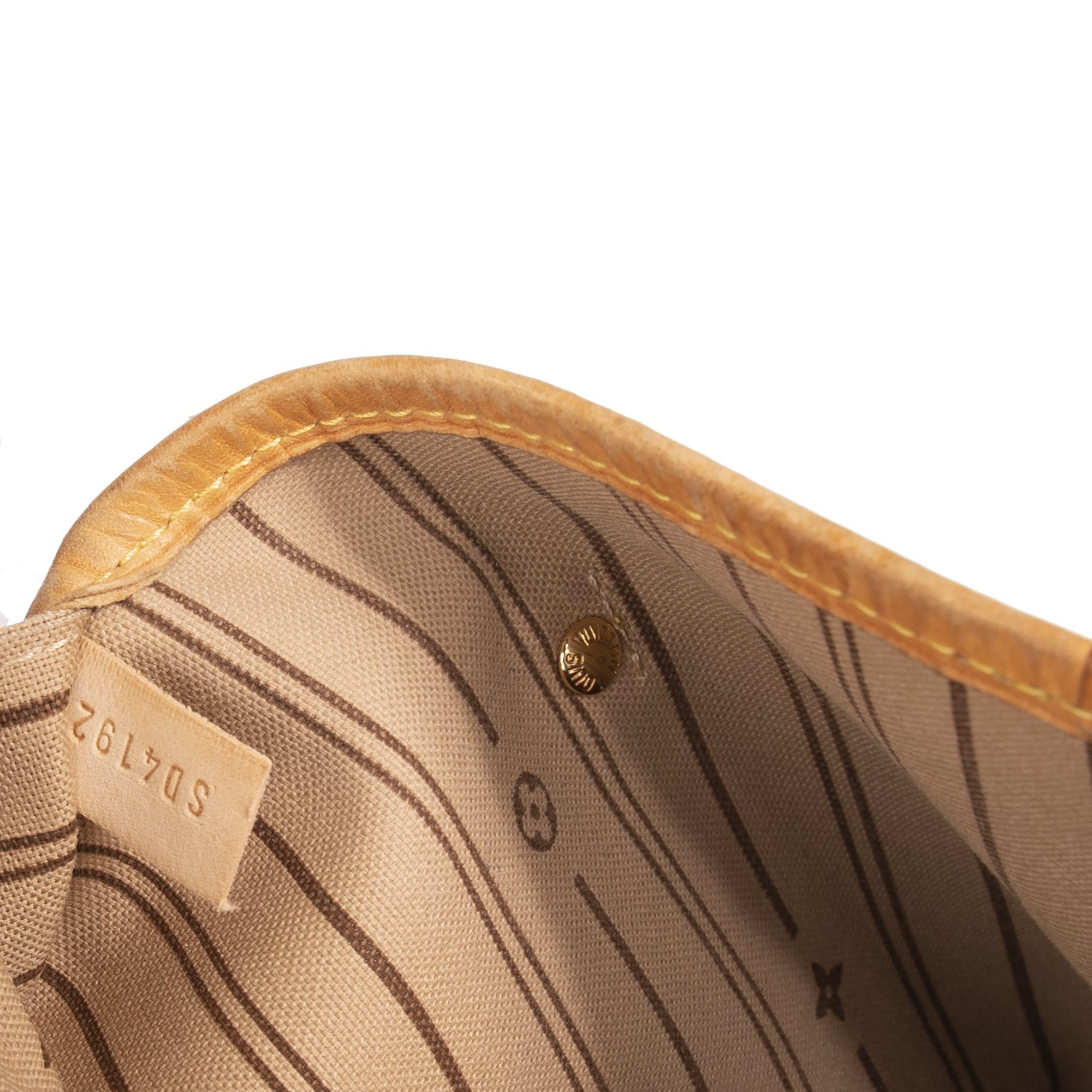 Condition: Good; minor scratches at hardware; moderate marks and discolouration at exterior vachetta leather trim and shoulder straps; slight staining at interior