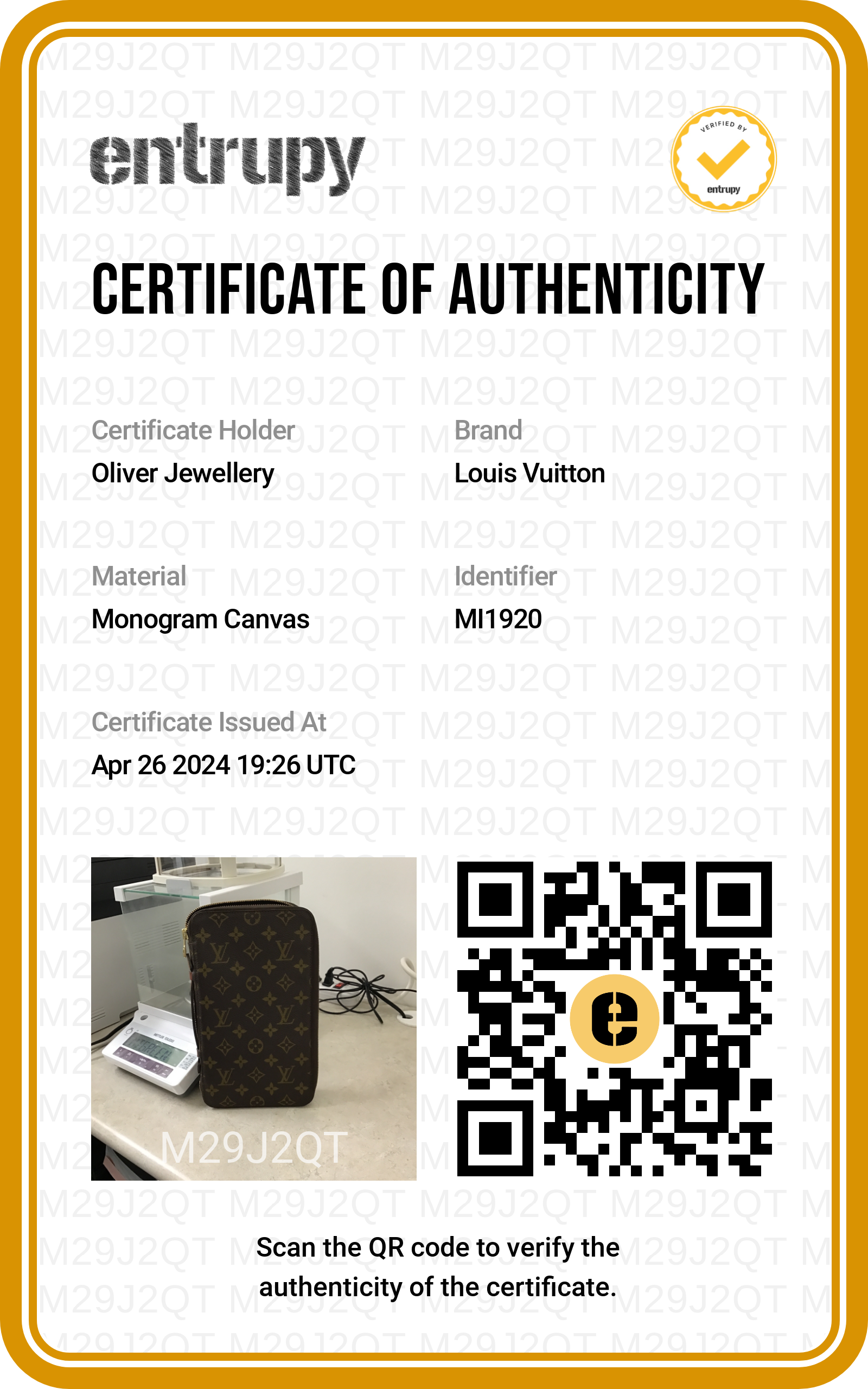 Dust Bag, Entrupy Certificate of Authenticity