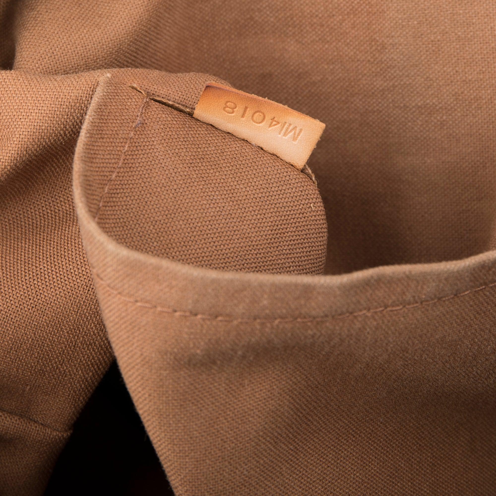 Condition: Good; slight surface scratches and tarnishing at hardware; moderate scuffs, marks, and discolouration of exterior leather trim, handles, and shoulder strap; clean interior