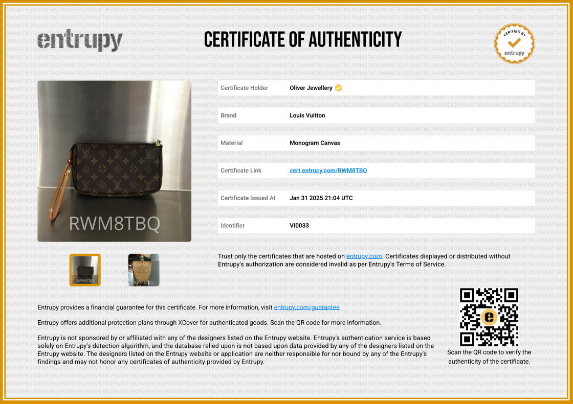 Dust Bag, Strap, Entrupy Certificate of Authenticity