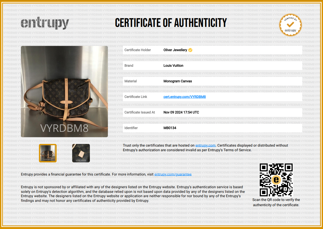 Box, Receipt, Dust Bag, Entrupy certificate of Authenticity