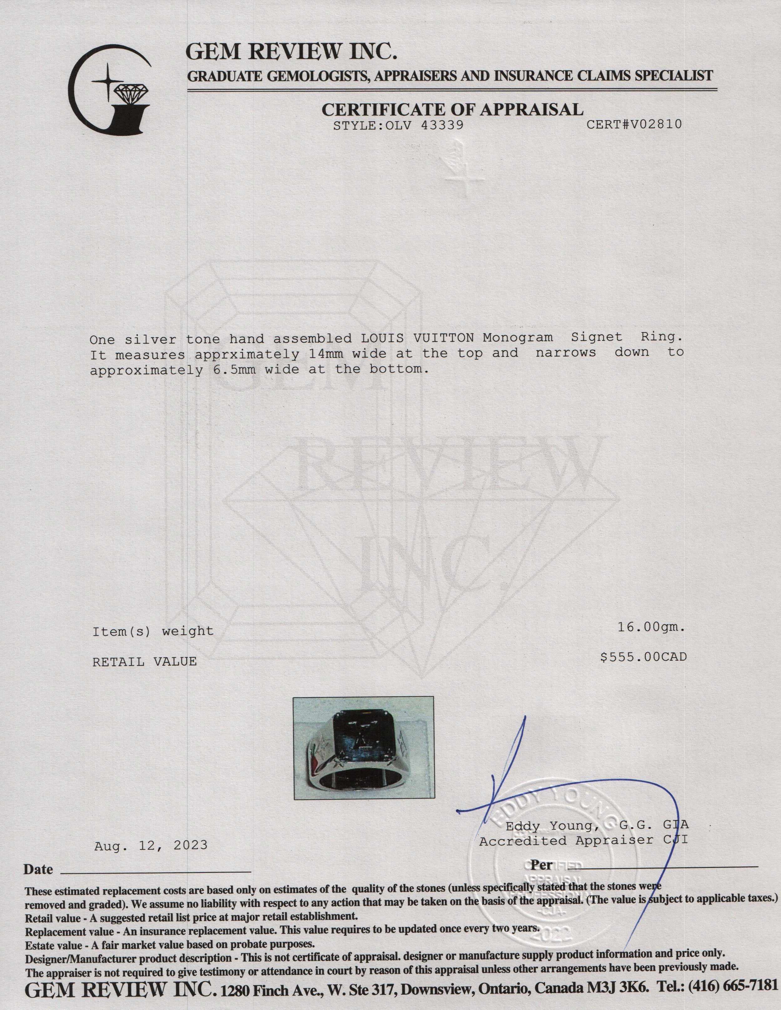 - Louis Vuitton Ring Size L, U.S. Size 9.75