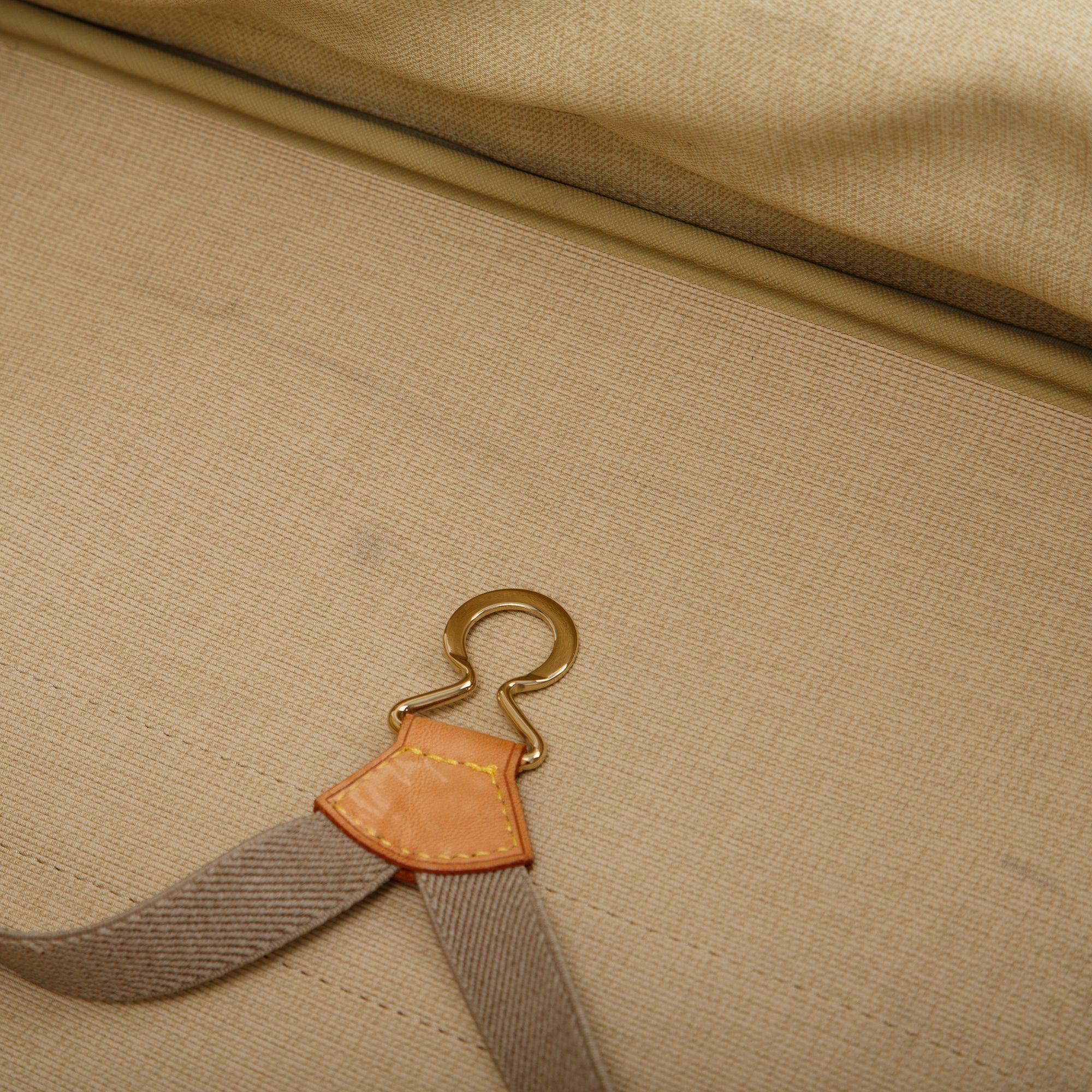 Condition: Good; slight surface scratches at hardware; some scuffs and discolouration at exterior leather trim and handle; slight scuffs and marks at exterior base; minor staining at interior