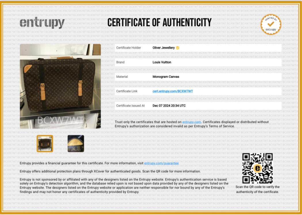 Luggage Tag, Lock & Keys, Entrupy Certificate of Authenticity