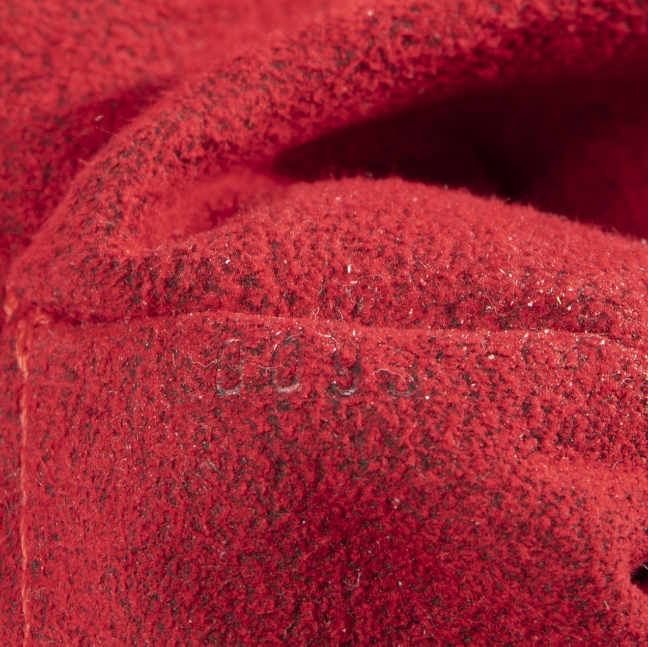 Condition: Good; some surface scratches and tarnishing at hardware; some scuffs and discolouration at exterior leather trim and shoulder strap; minor pen marks at interior lining