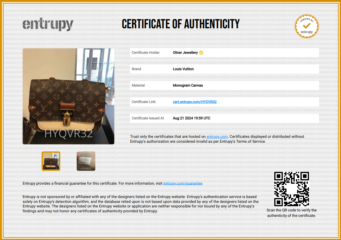 Dust Bag, Strap, Entrupy Certificate of Authenticity