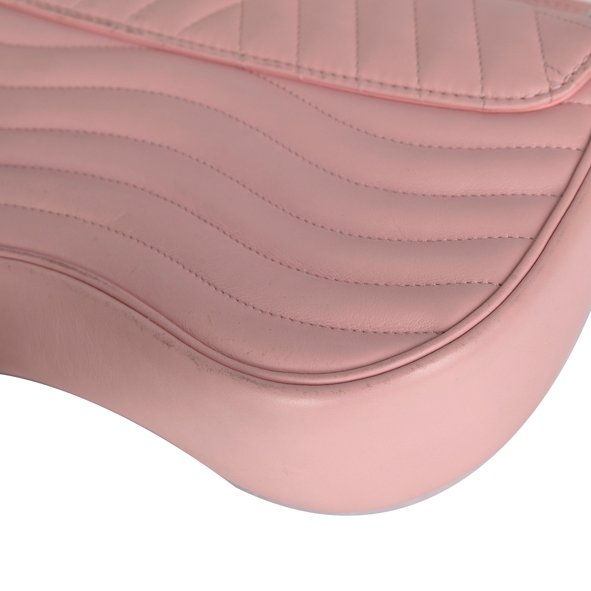 Condition: Very Good, slight surface scratches at hardware, slight scuffing at edges of exterior leather, light staining at interior.