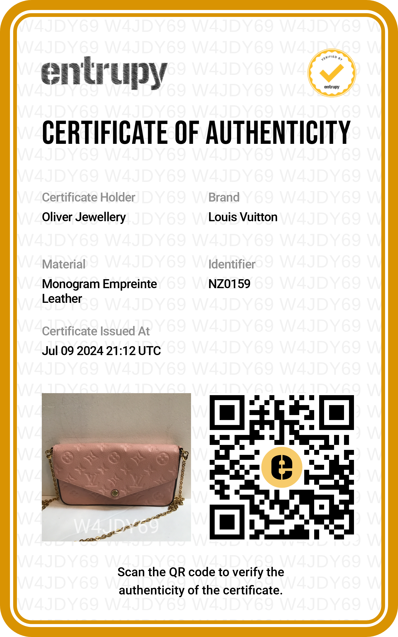 Inserts, Entrupy Certificate of Authenticity