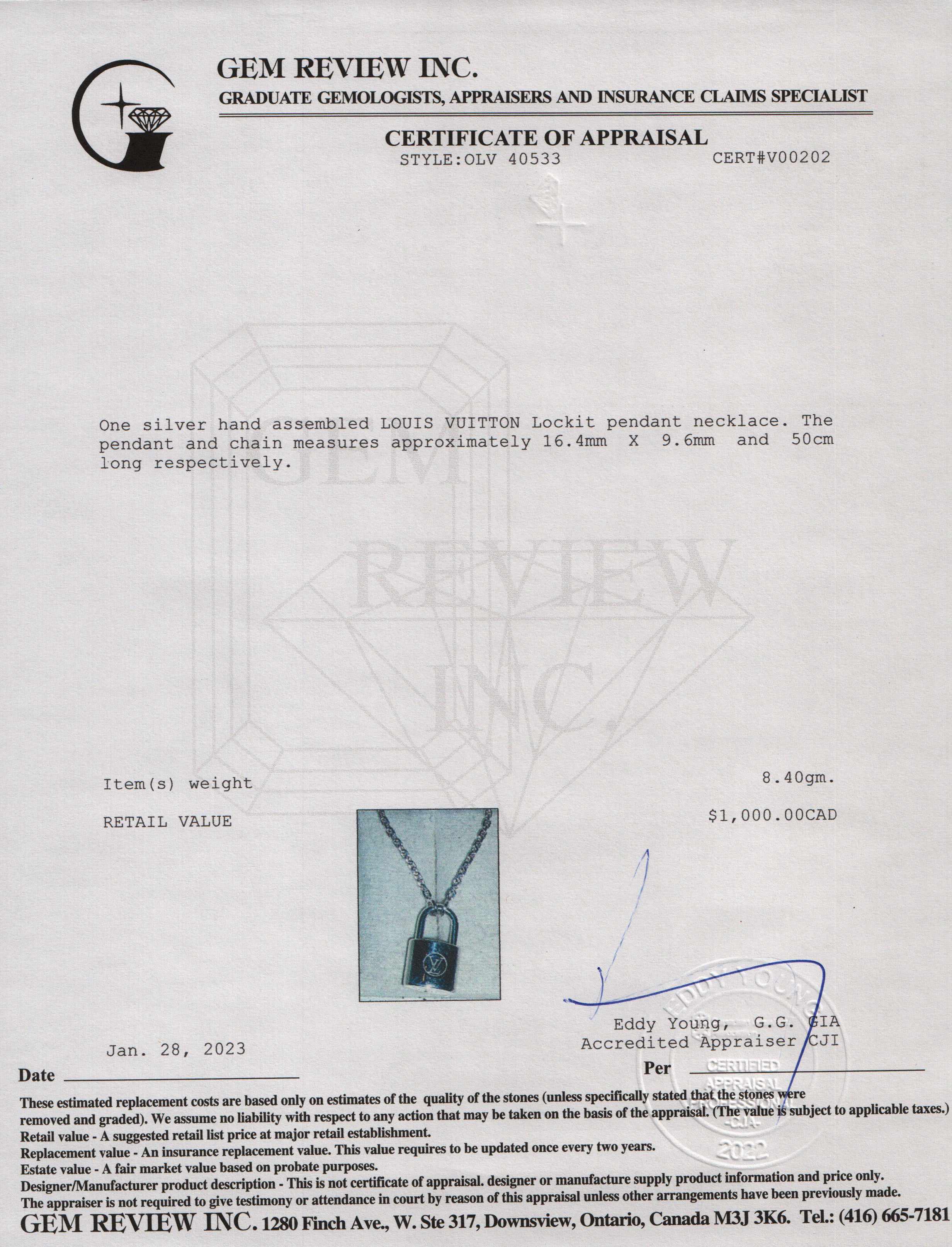 Louis Vuitton Sterling Silver Lockit Pendant Necklace
