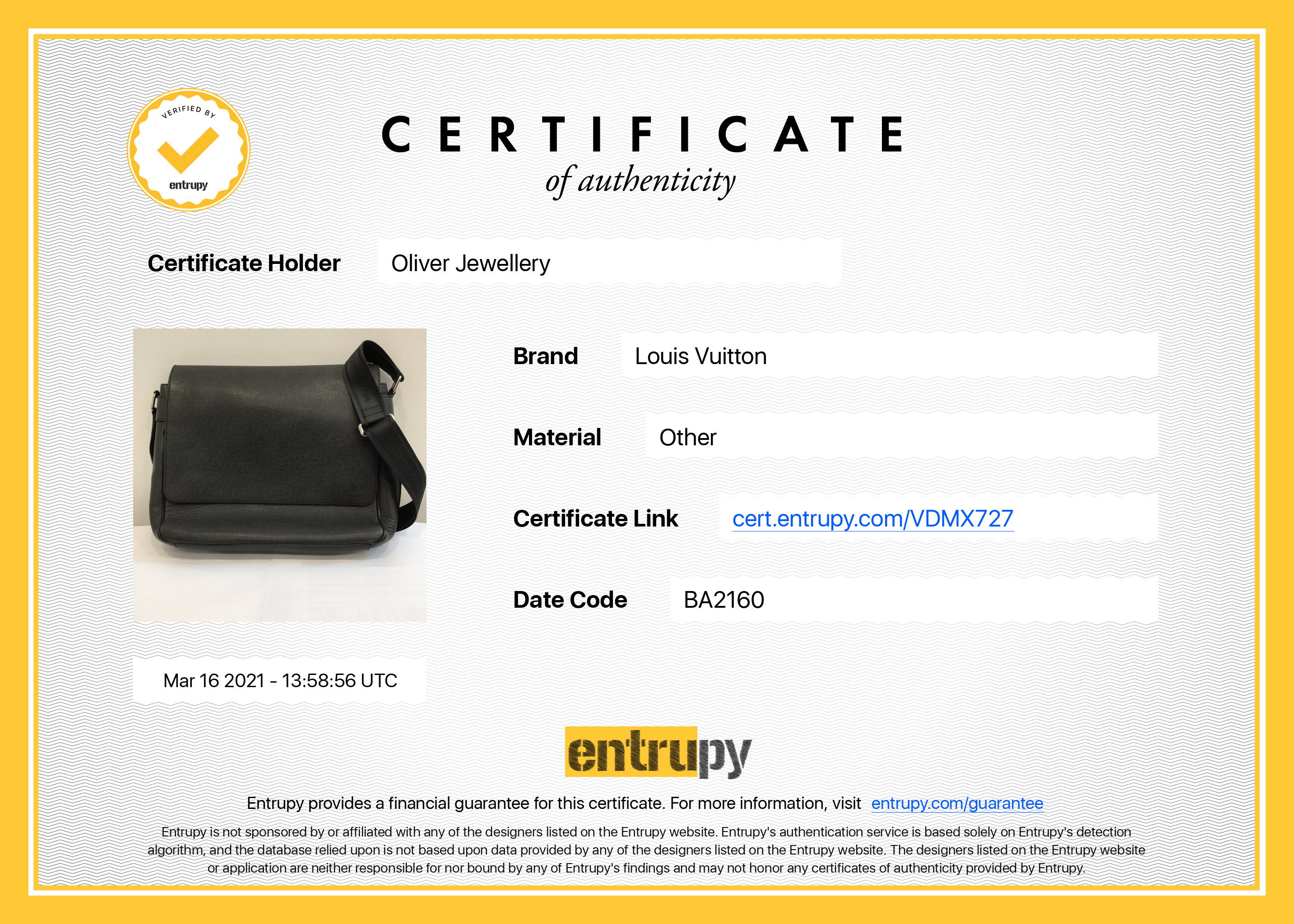 Included Item: Entrupy Certificate of Authenticity #VDMX727
