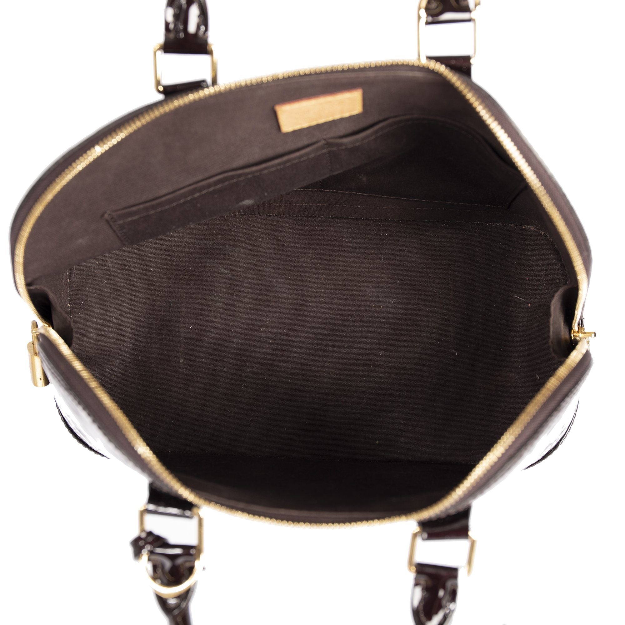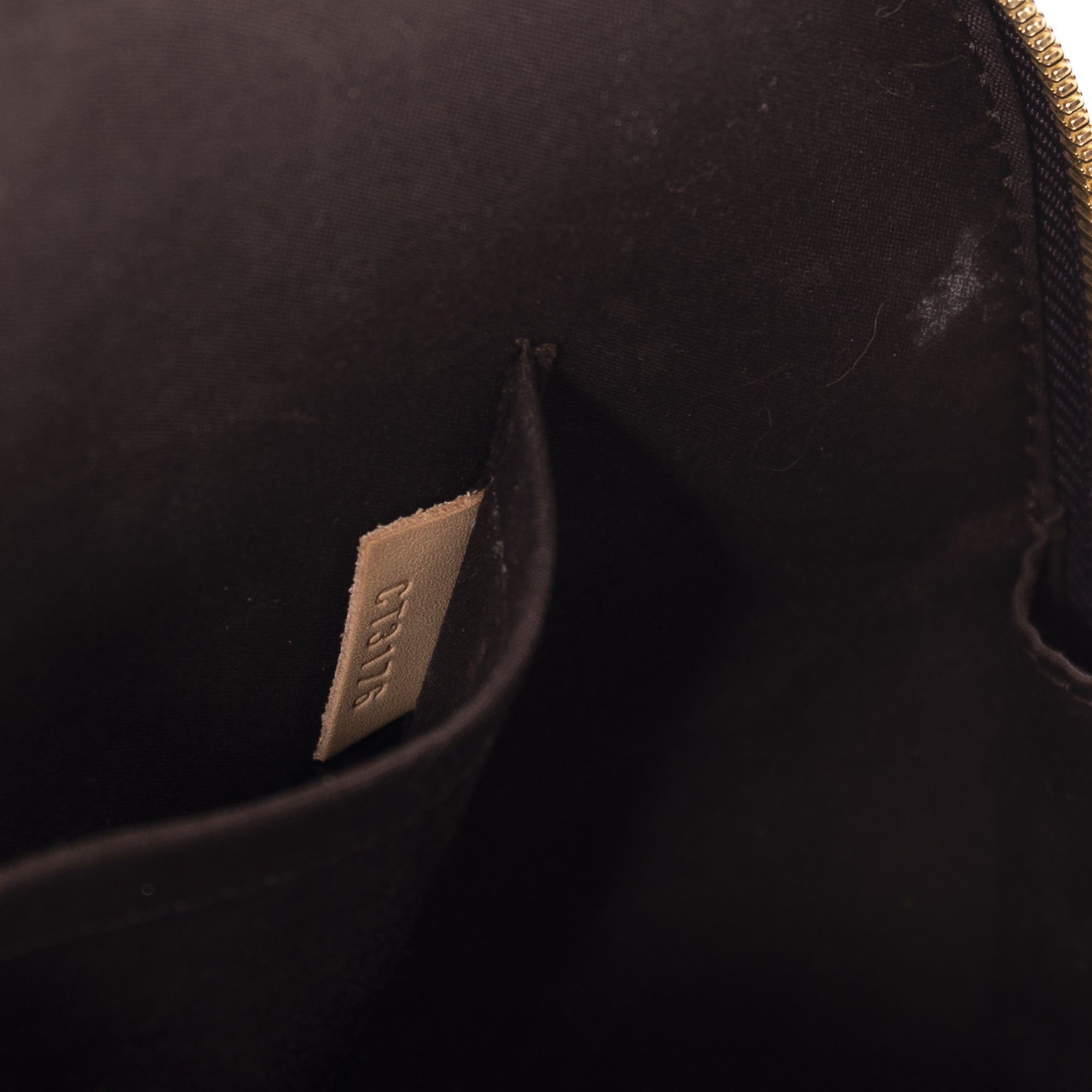 Condition: Very Good; slight surface scratches and tarnishing at hardware; slight staining and residue at interior lining