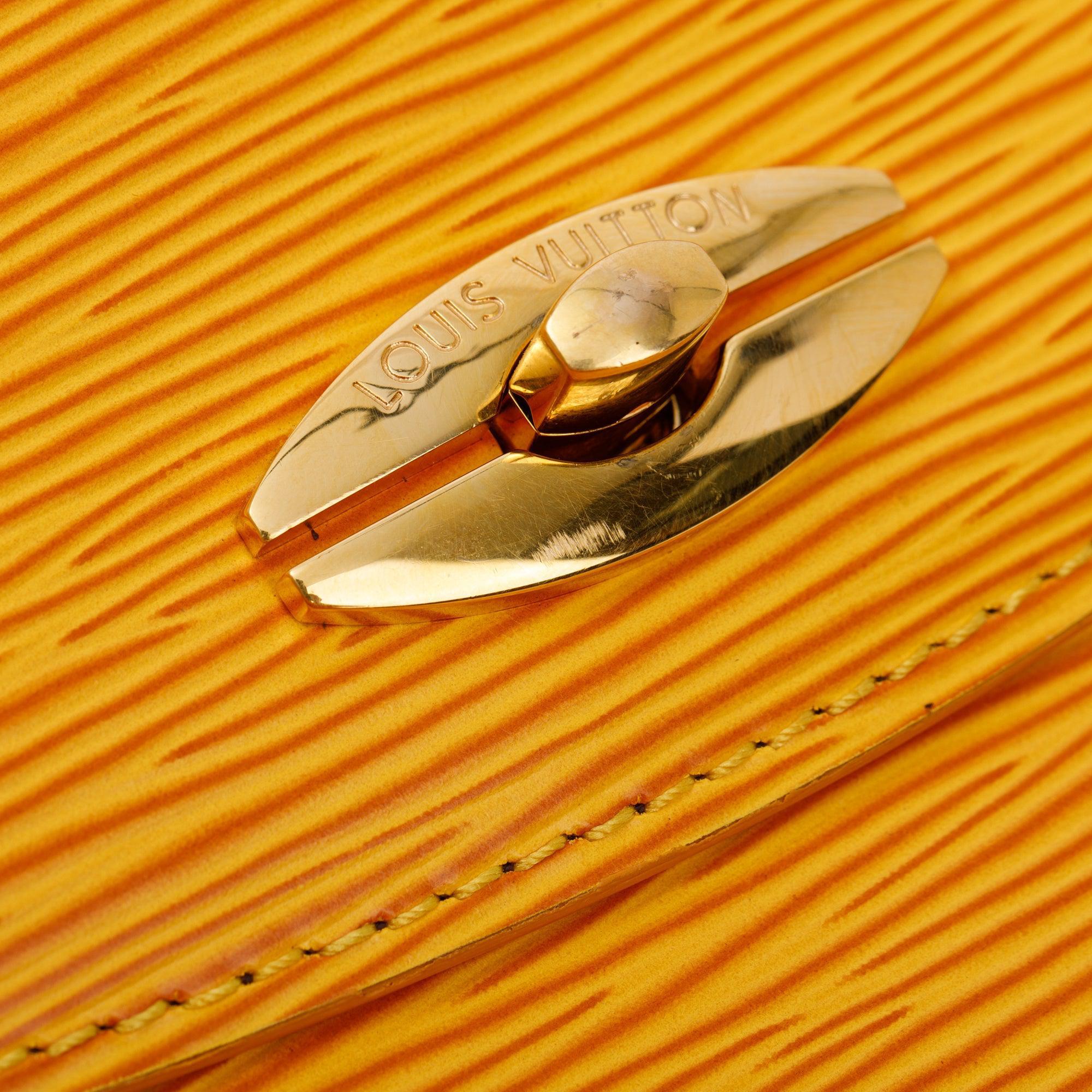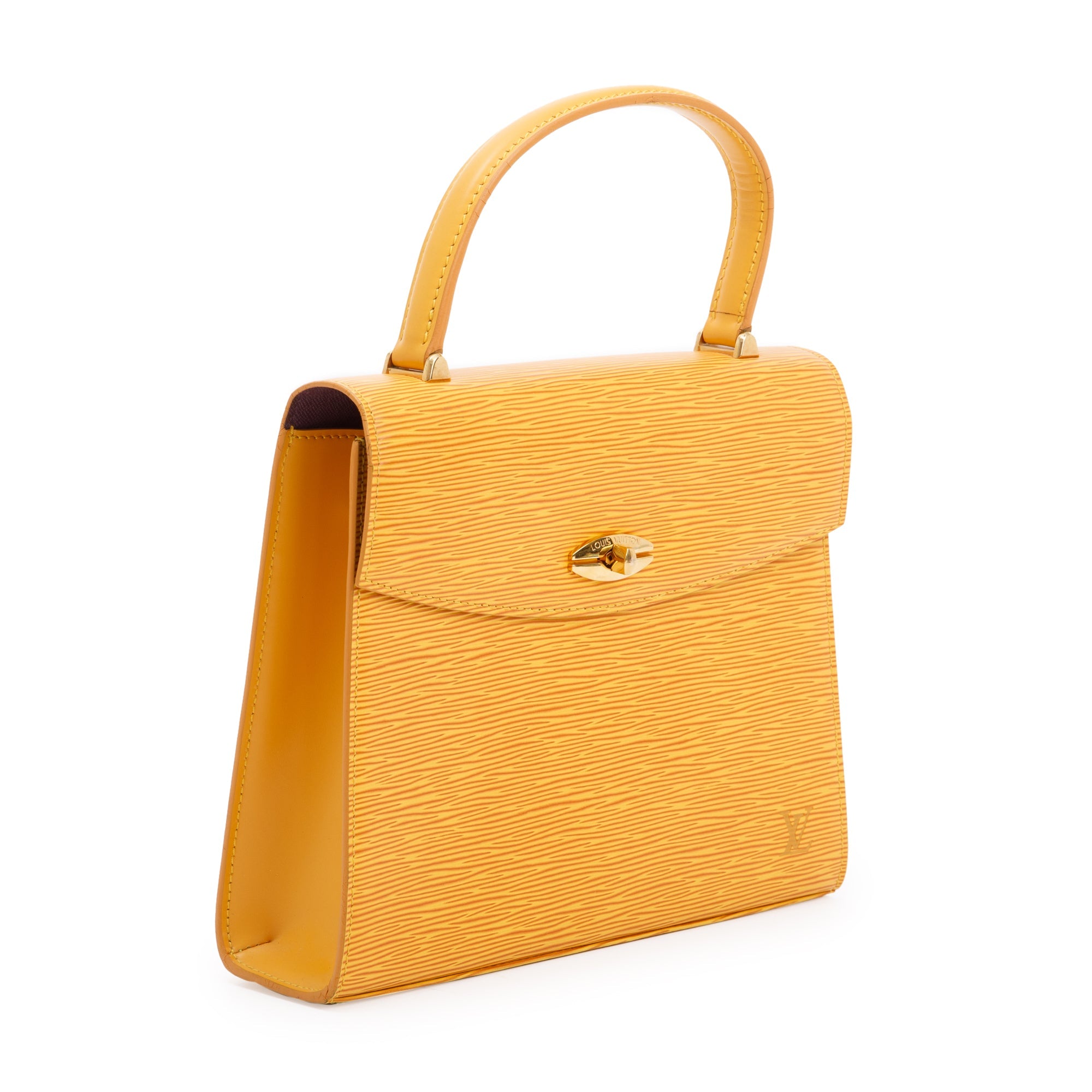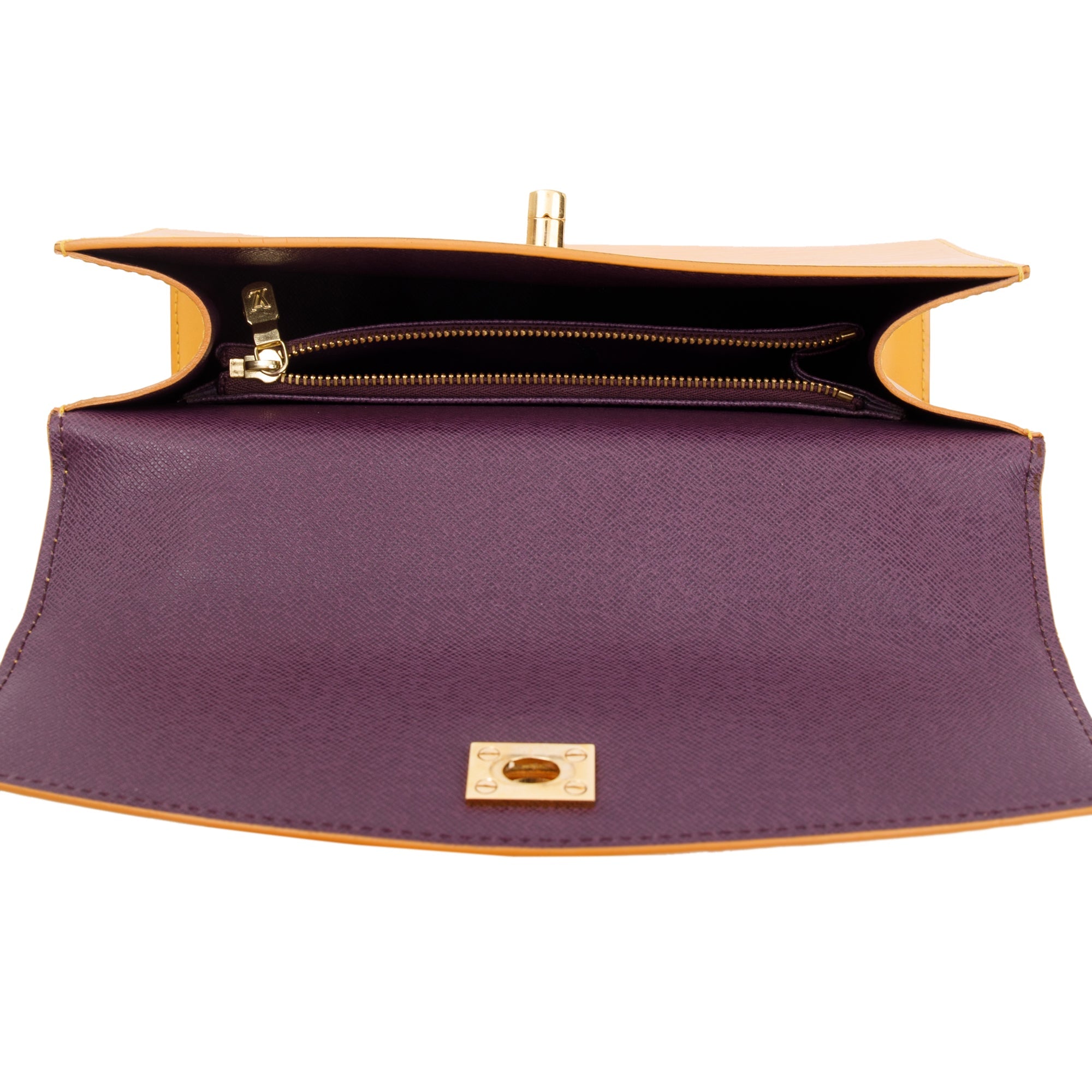 Condition: Good; minor scratches at hardware; slight creasing and wear at top handle; slight peeling at exterior pocket